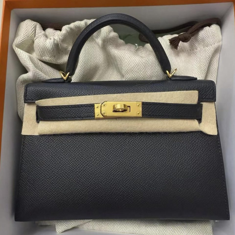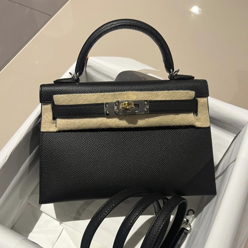 Kelly 20 Mini Black Epsom Gold Hardware Stamp K