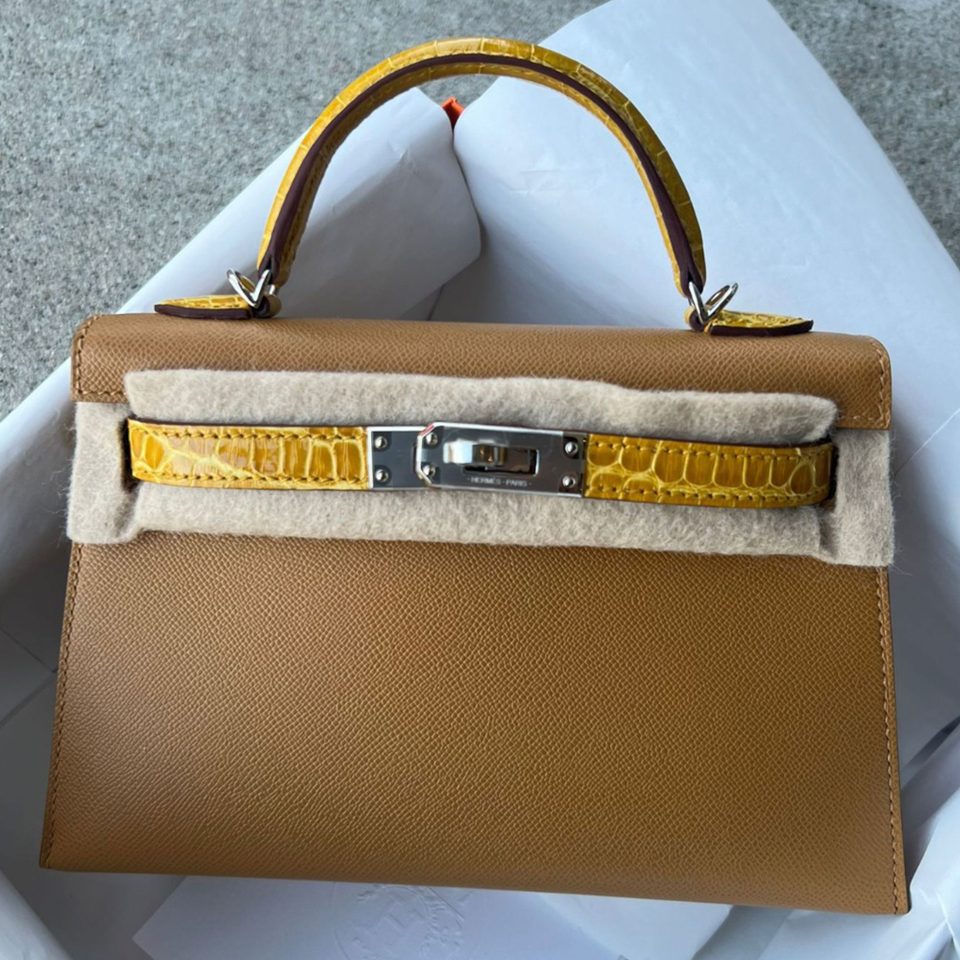Kelly 20 Mini Touch Sesame/Jaune Amber Epsom Palladium Hardware Stamp K