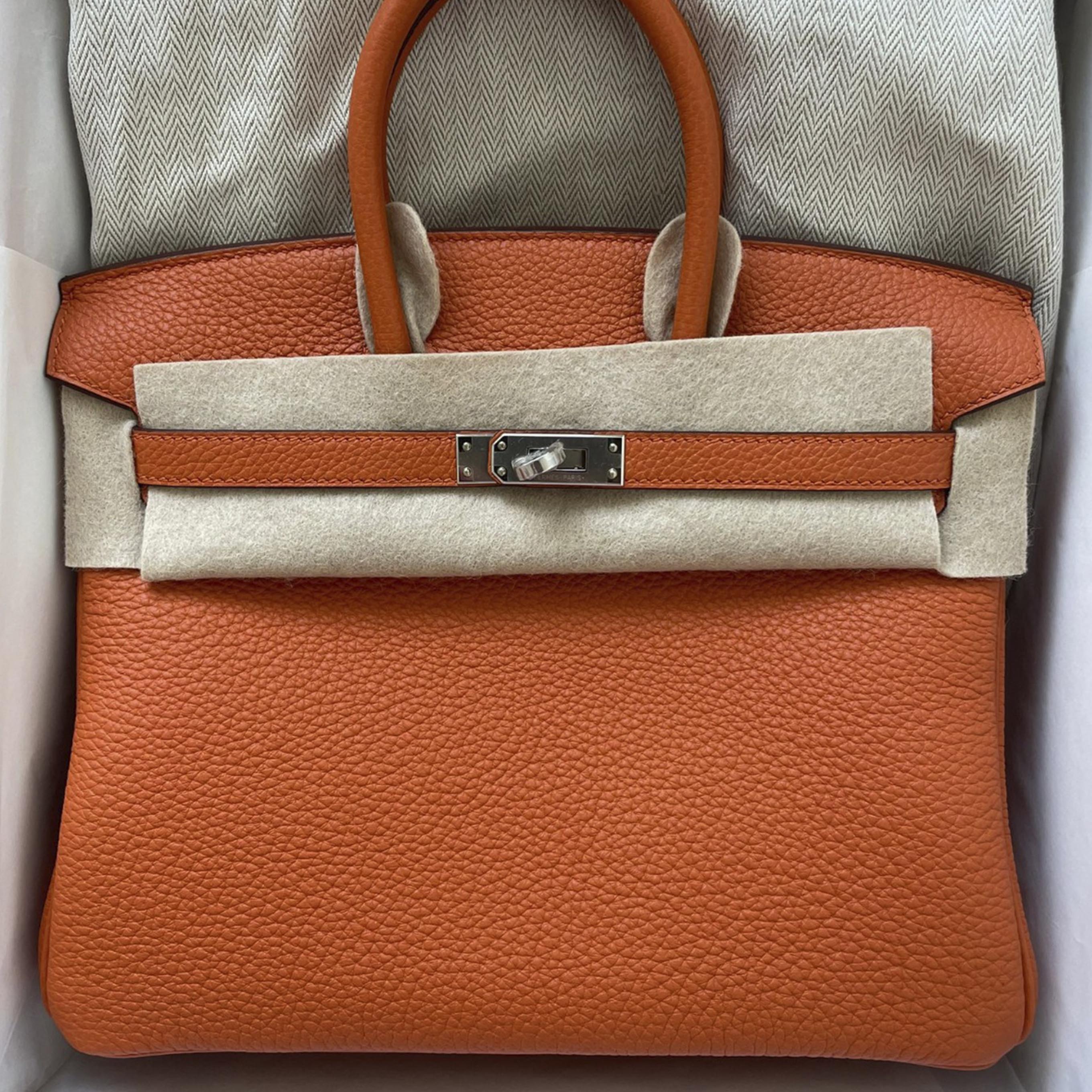 Birkin 25 Orange Togo Palladium Hardware Stamp W