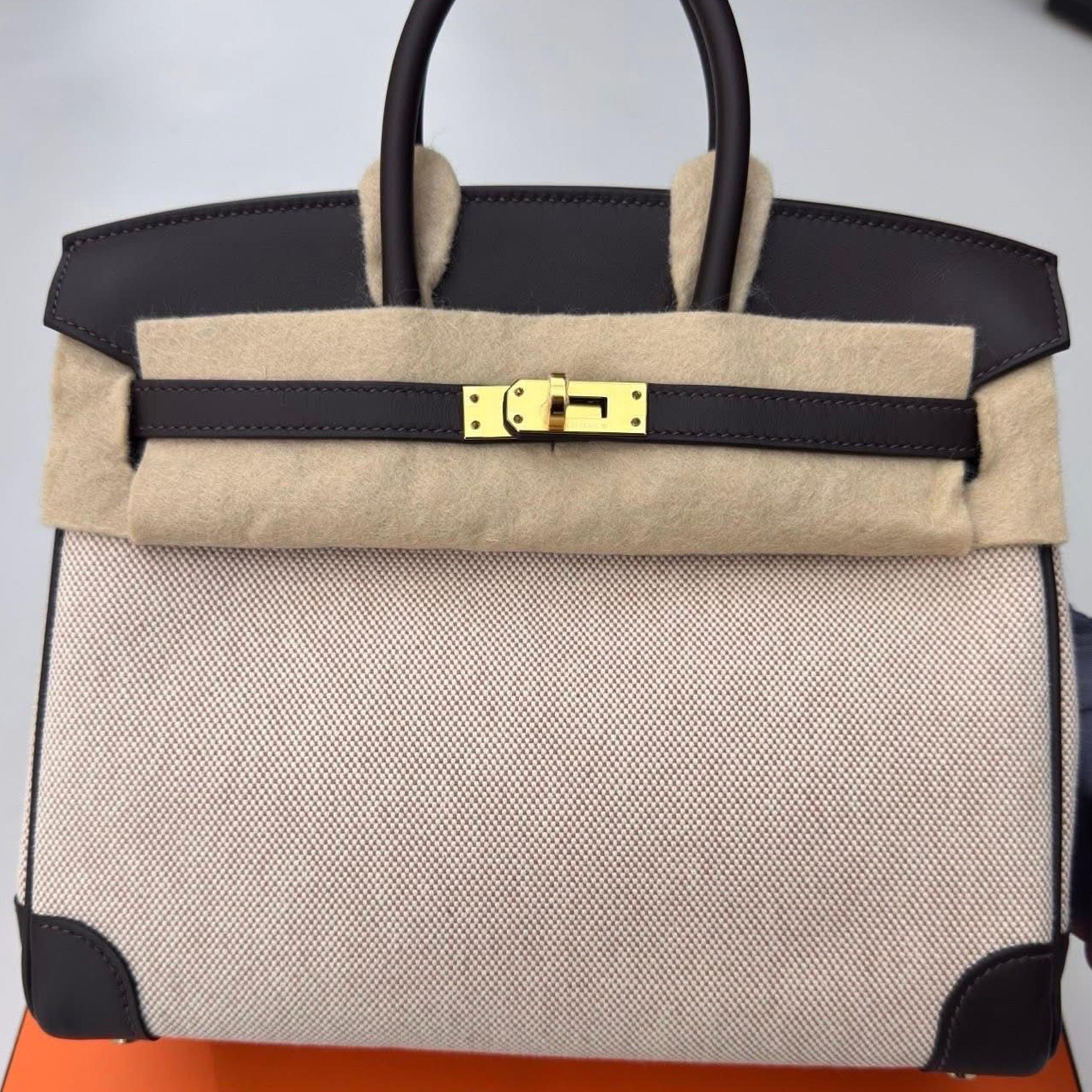 Birkin 25 Moka Toile Gold Hardware Stamp K