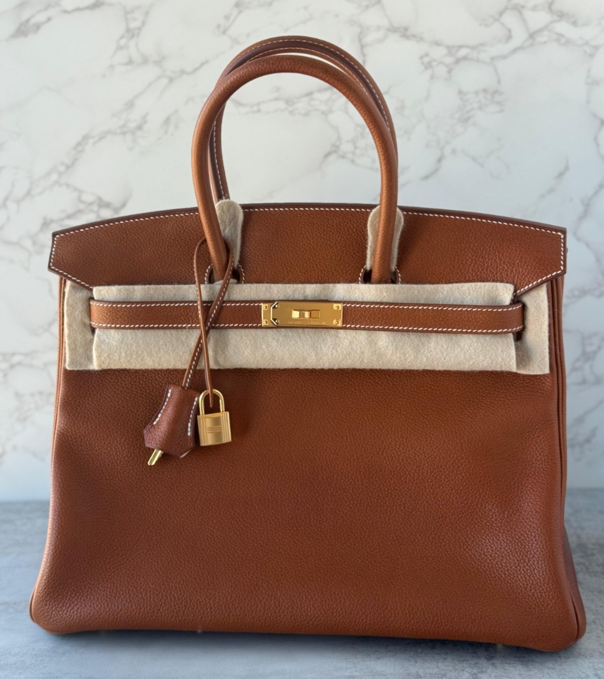 Birkin 35 Fauve Barenia Faubourg Gold Hardware Stamp K