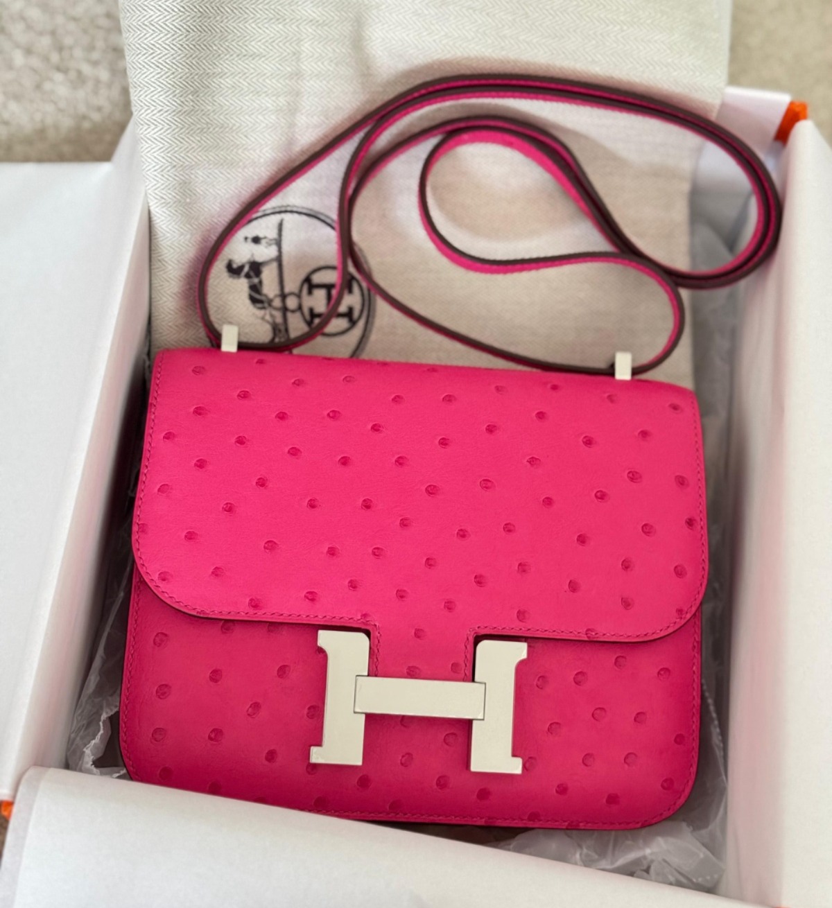 Constance 18 Rose Tyrien Ostrich Palladium Hardware Stamp y