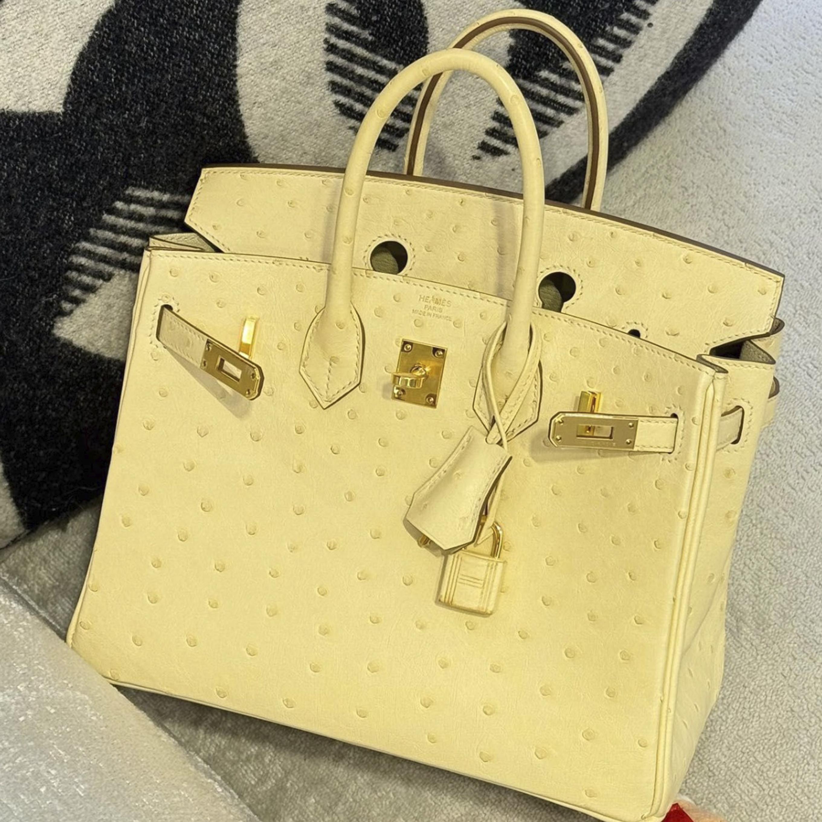 Birkin 25 Vanilla Ostrich Gold Hardware Stamp U