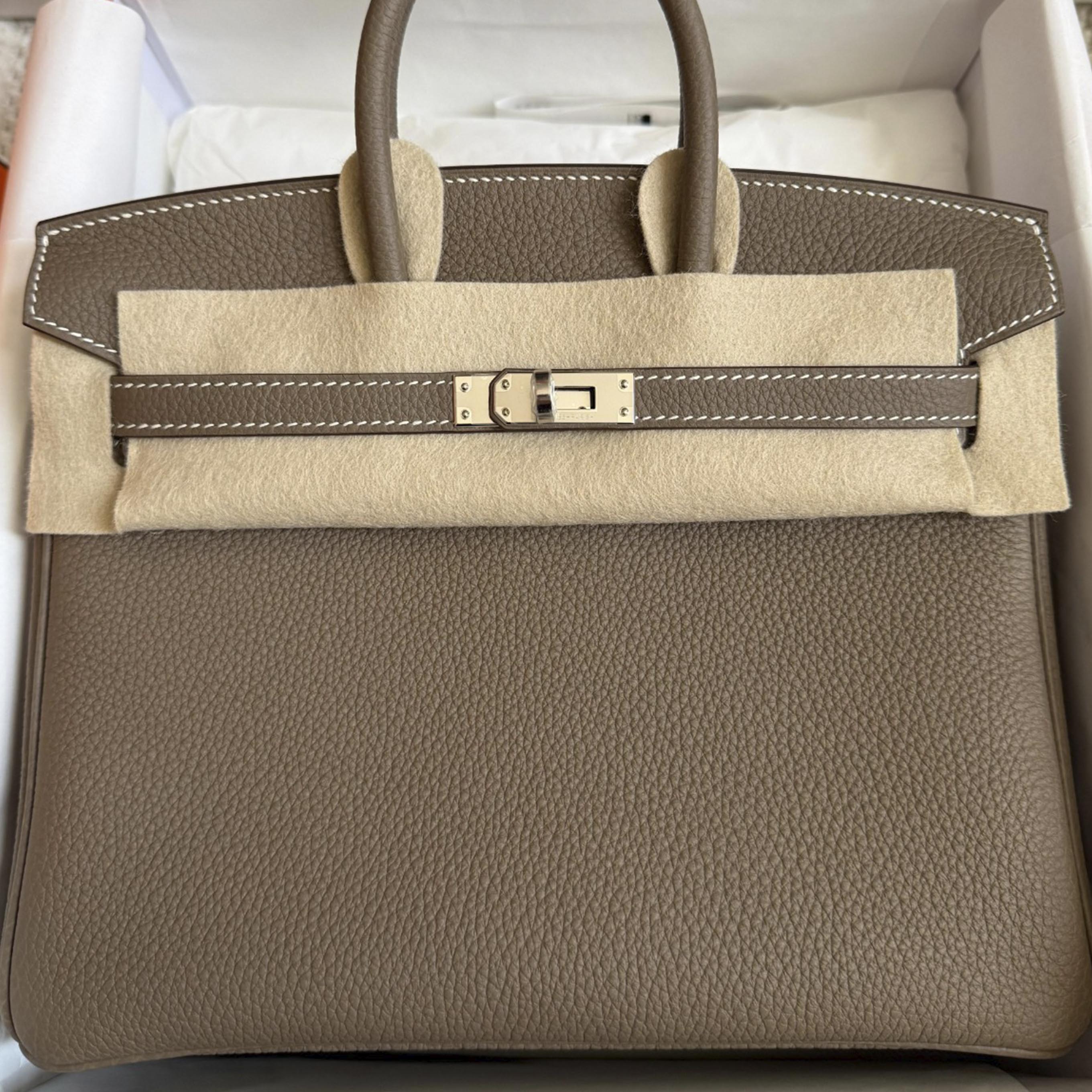 Birkin 25 Etoupe Togo Palladium Hardware Stamp W