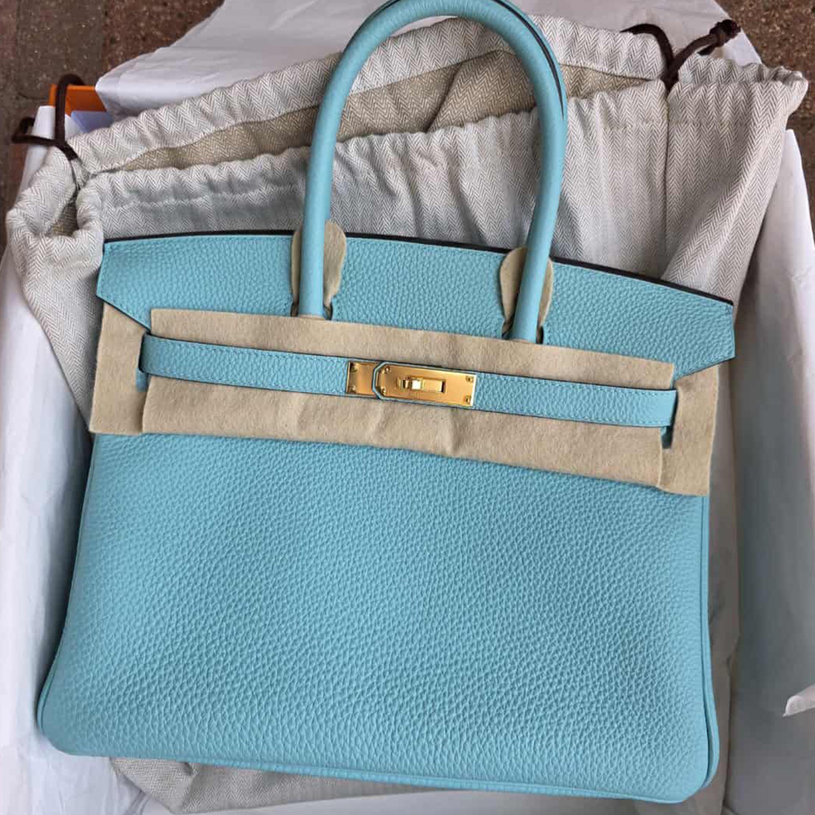 Birkin 30 Bleu Atoll Gold Hardware Stamp T