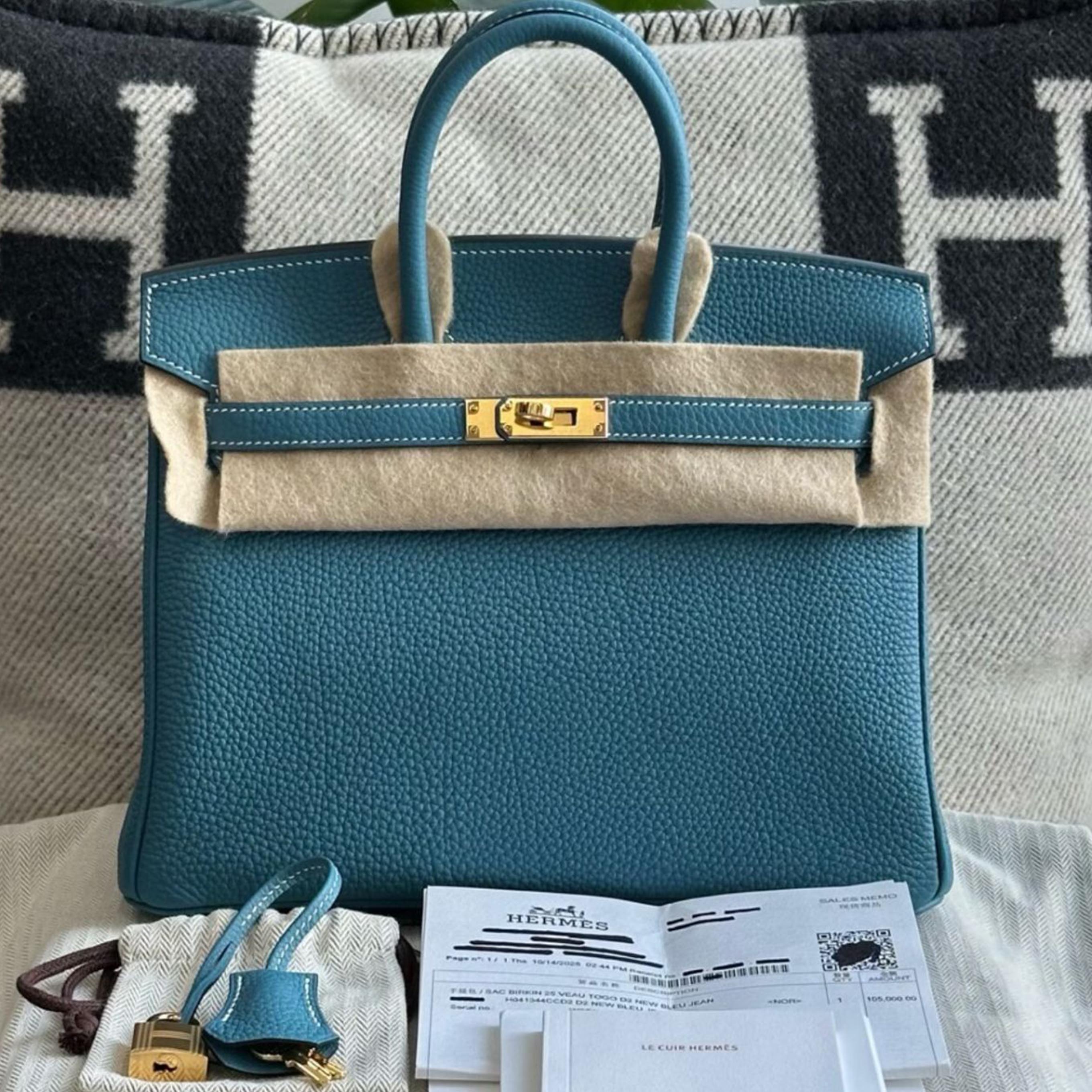 Birkin 25 Blue Jean Togo Gold Hardware Stamp W