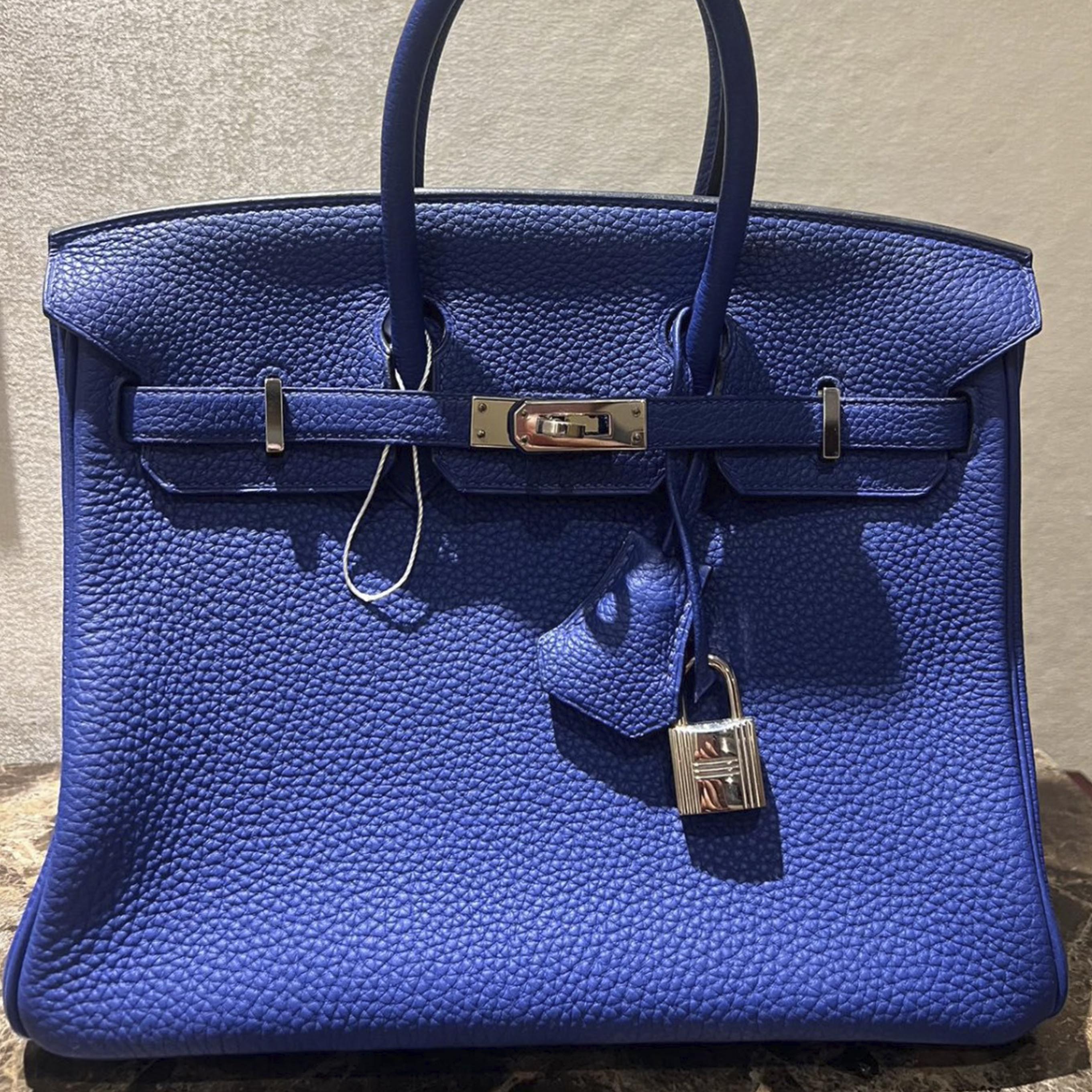 Birkin 25 Blue Togo Palladium Hardware Stamp A