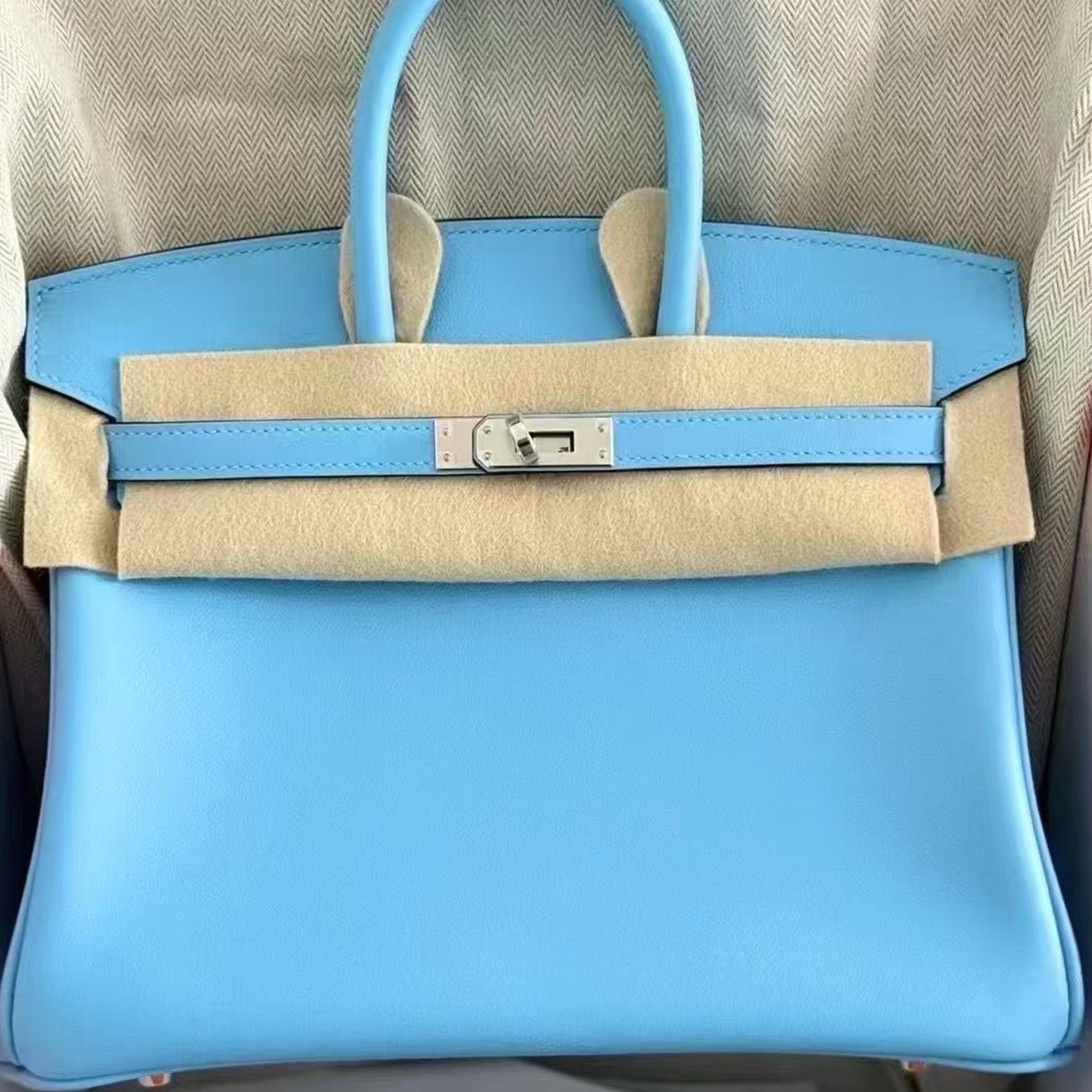 Birkin 25 Celeste Swift Palladium Hardware Stamp K