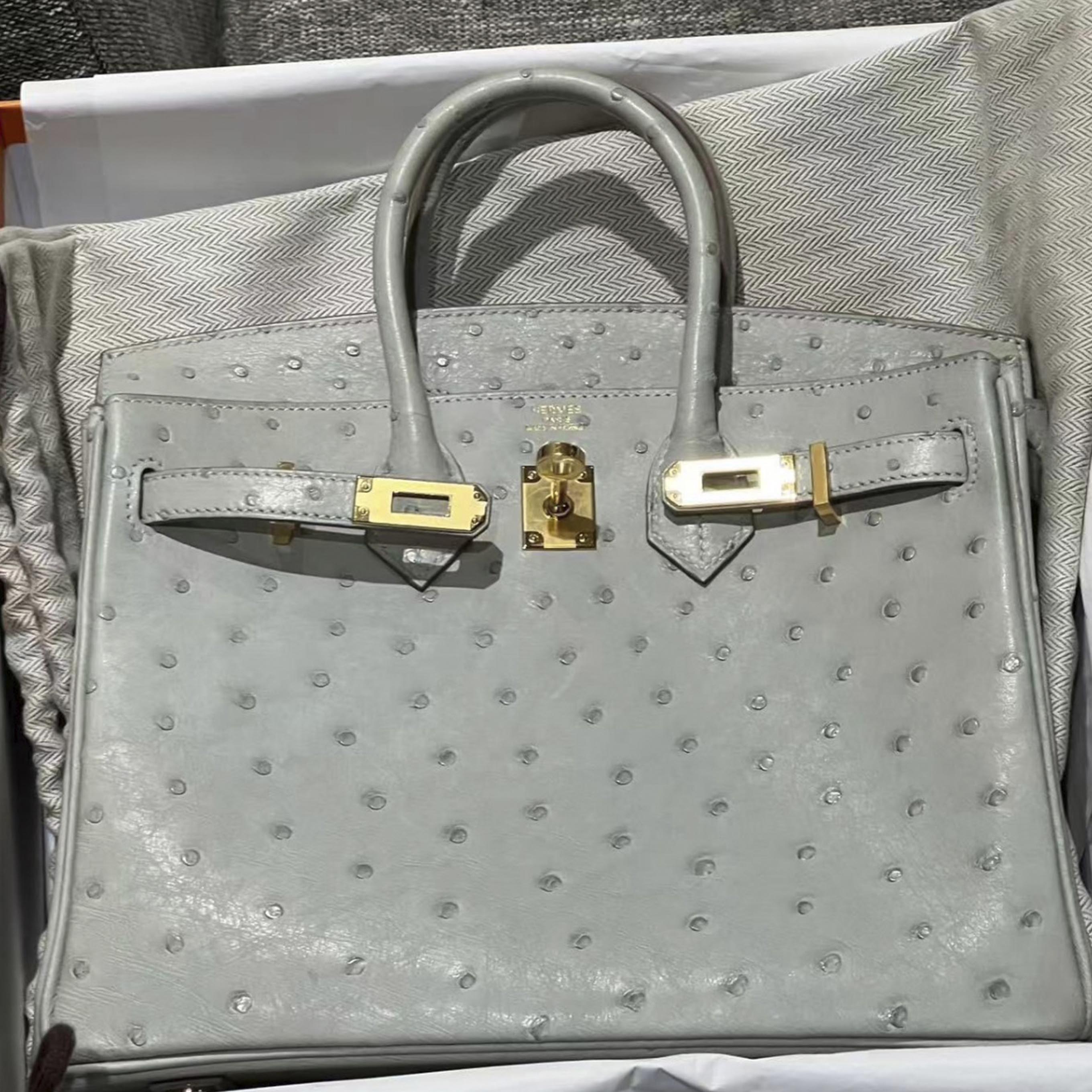 Birkin 25 Gris Perle Ostrich Gold Hardware Stamp B