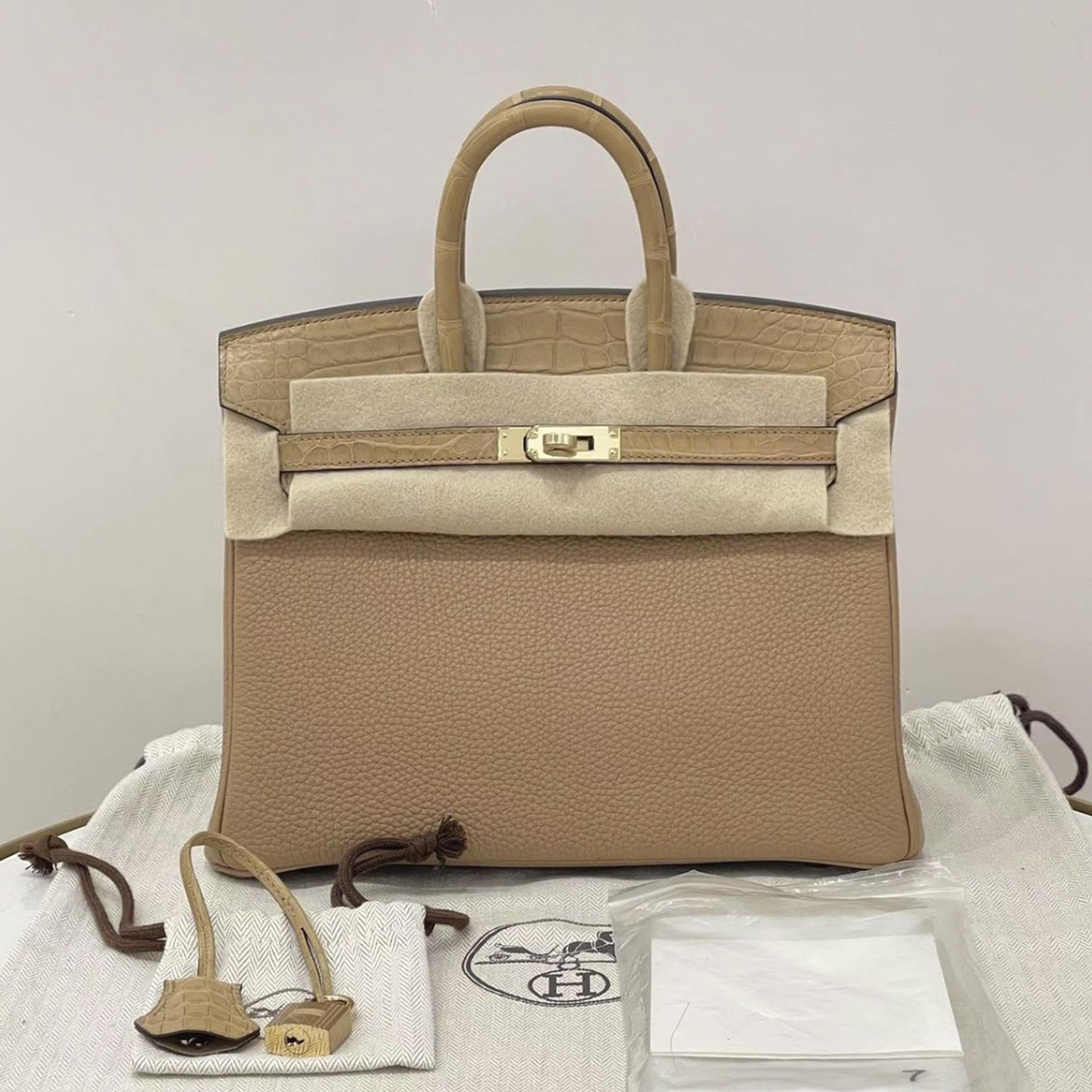 Birkin 25 Touch Chai Matte/Togo Permabrass Hardware Stamp W
