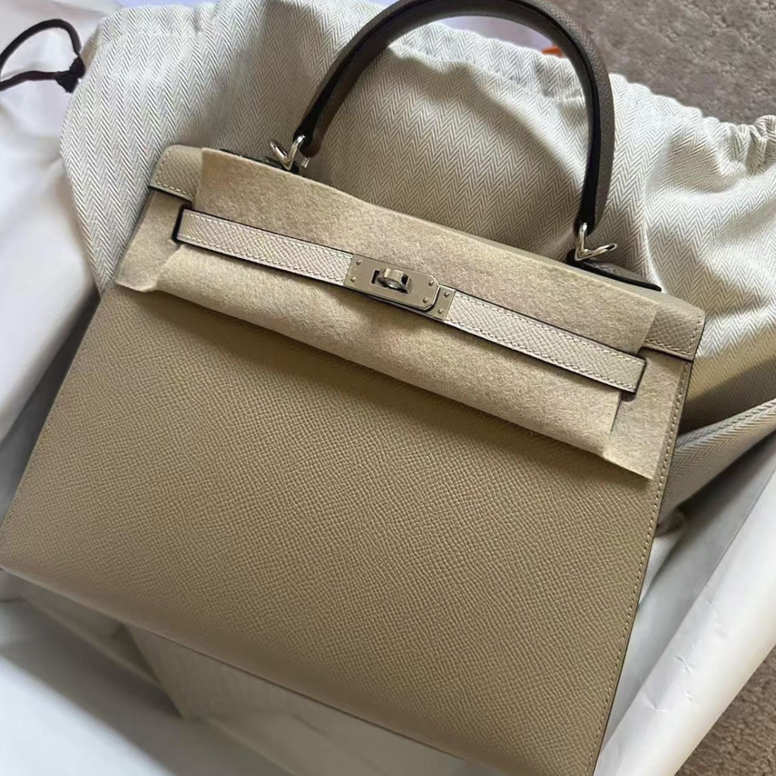 Kelly 25 Tricolor Trench/Craie/Etoupe Palladium Hardware Stamp K