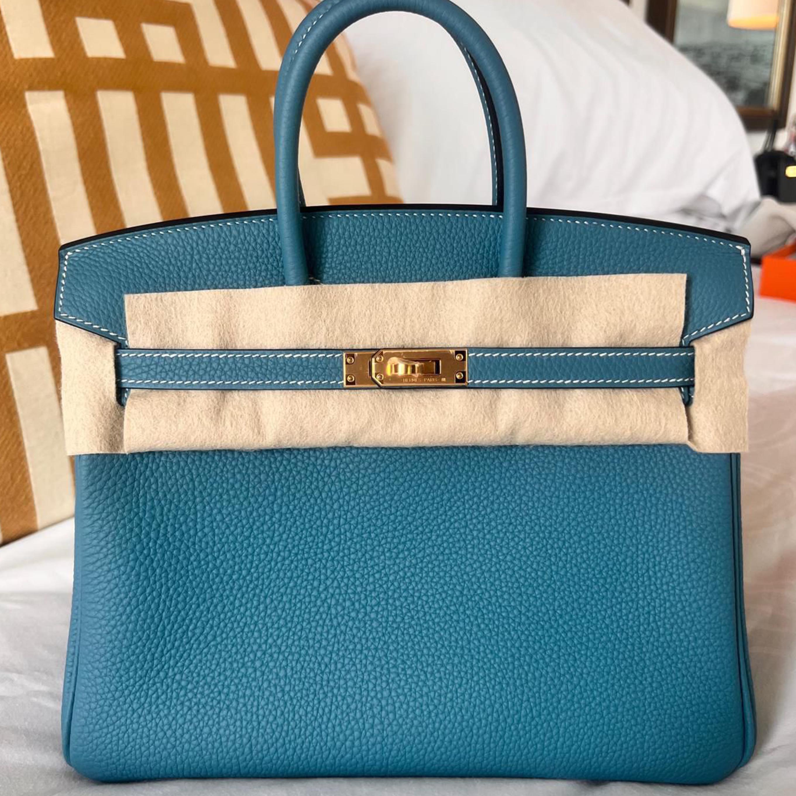 Birkin 25 Blue Jean Togo Gold Hardware Stamp W