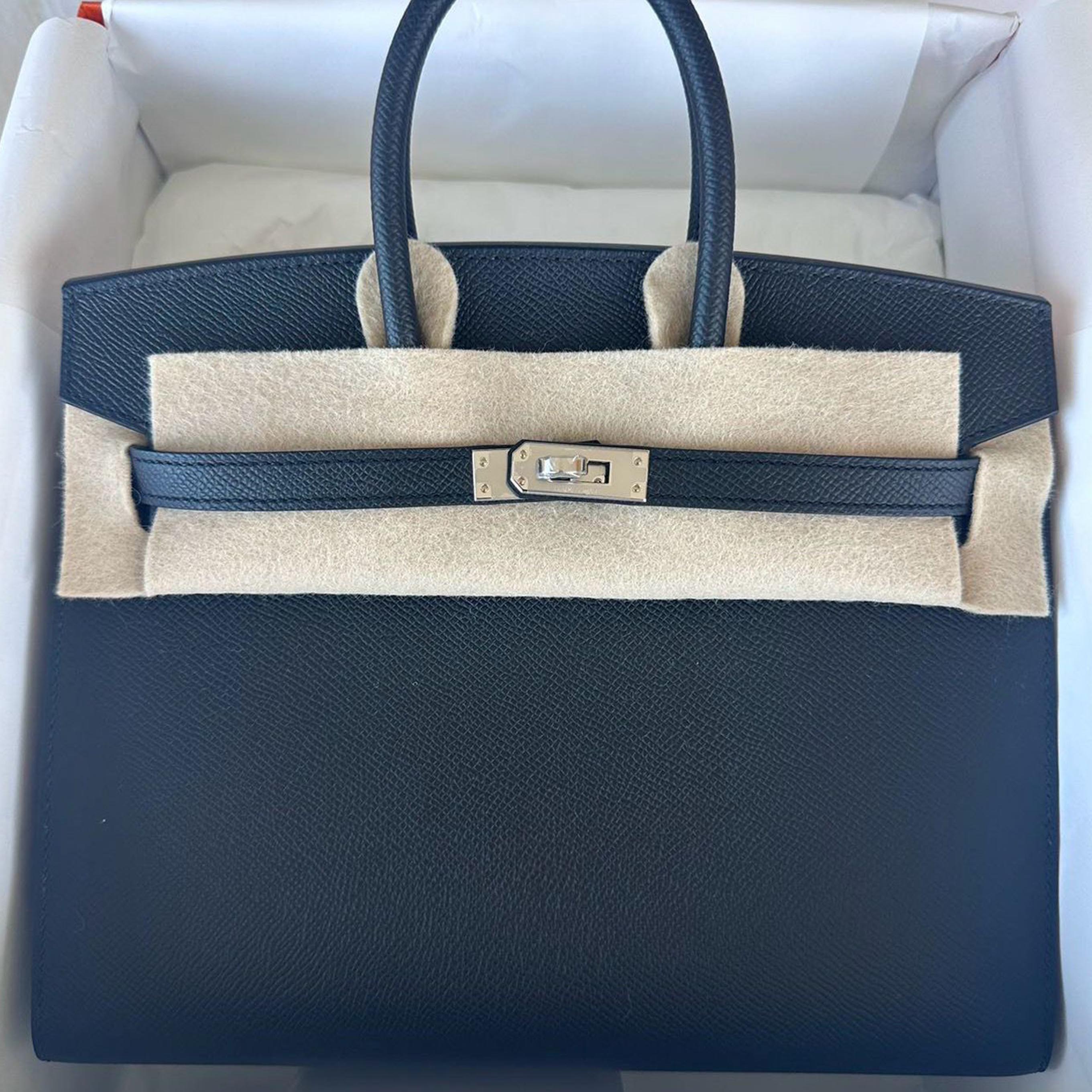 Birkin 25 Black Epsom Sellier Palladium Hardware Stamp K