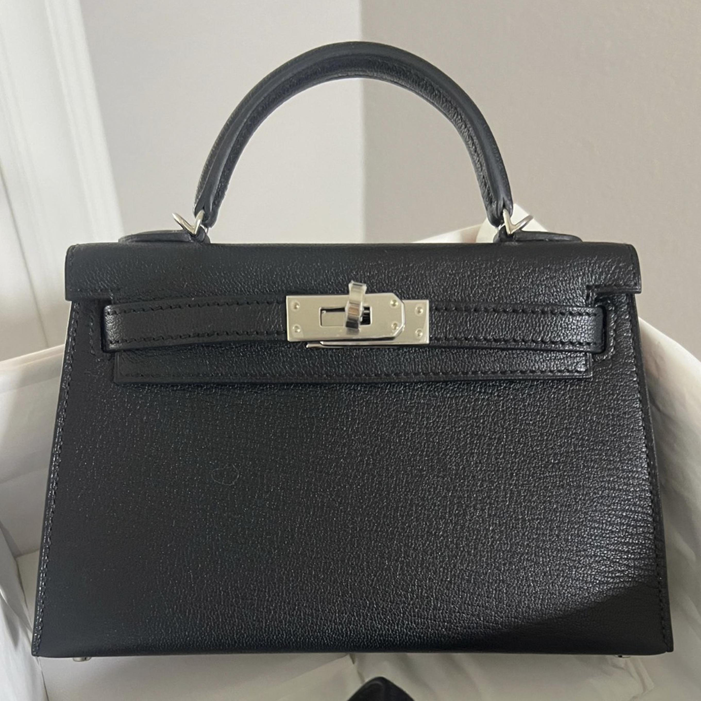 Kelly 20 Mini Black/Gold Inside Palladium Hardware Stamp W