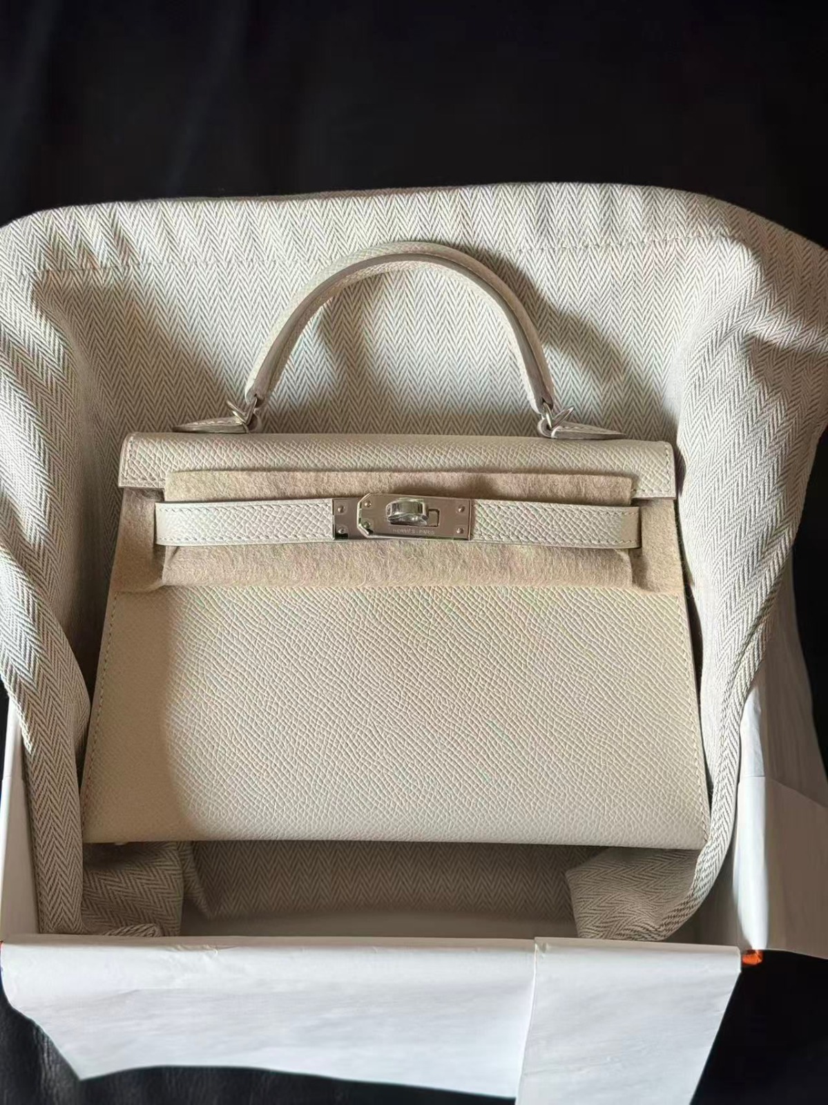 Kelly 20 Mini HSS Craie Verso Blue Epsom Palladium Hardware Stamp K