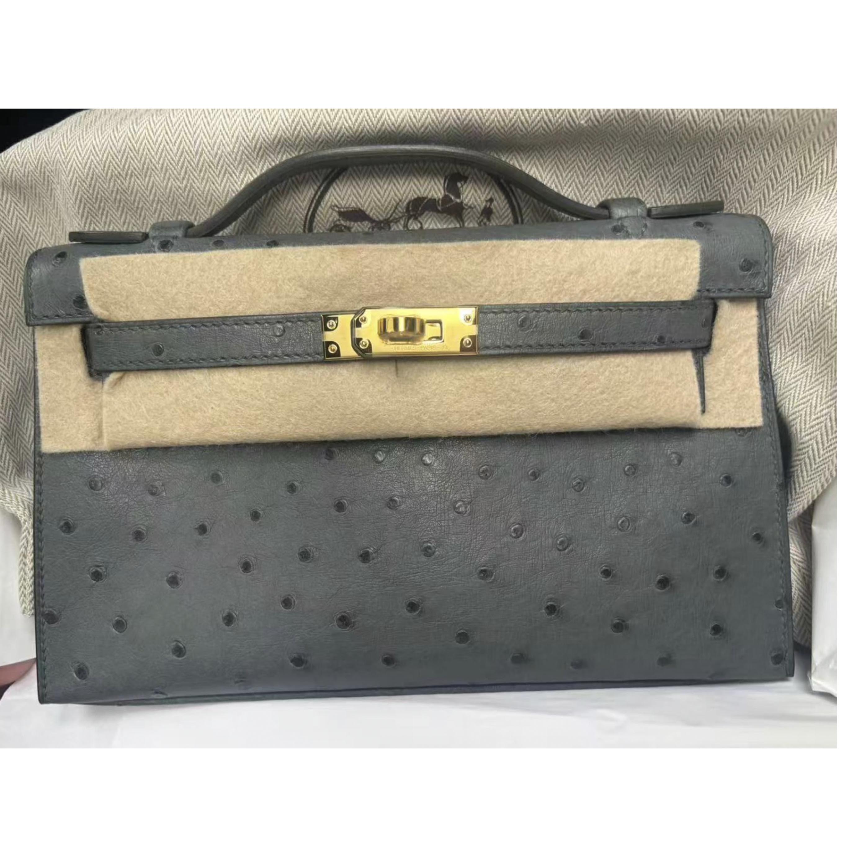 Kelly Pochette Vert Amande Ostrich Gold Hardware Stamp K