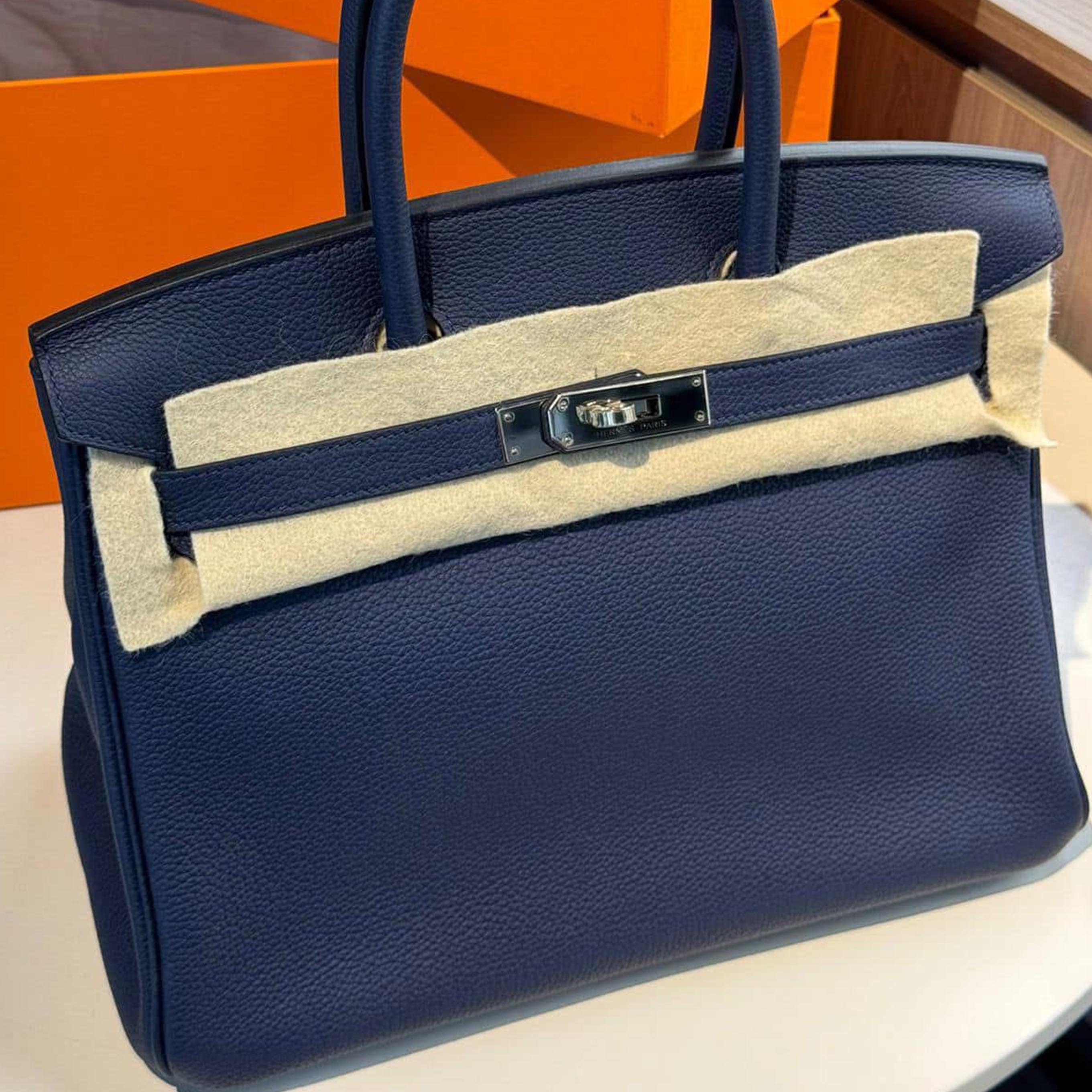 Birkin 30 Blue Nuit Togo Palladium Hardware Stamp W