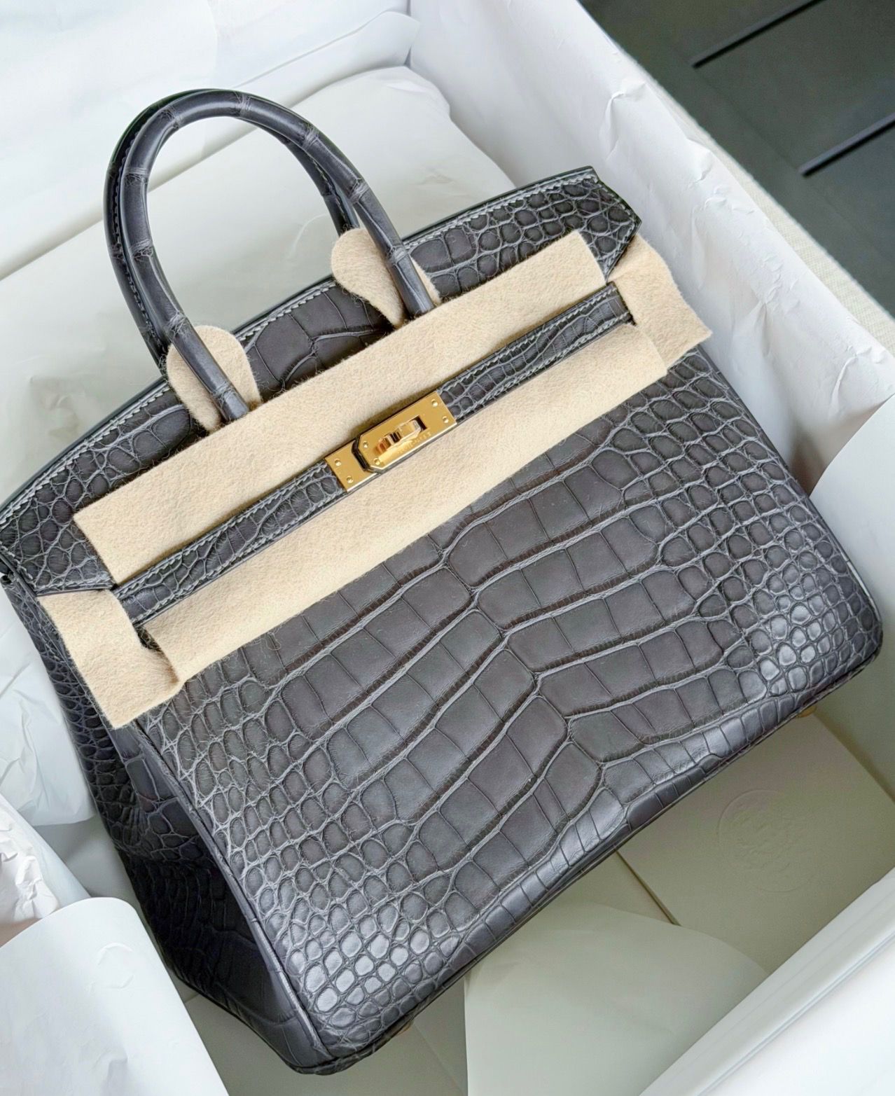Birkin 25 Gris Graphite Alligator Matte Gold Hardware Stamp k