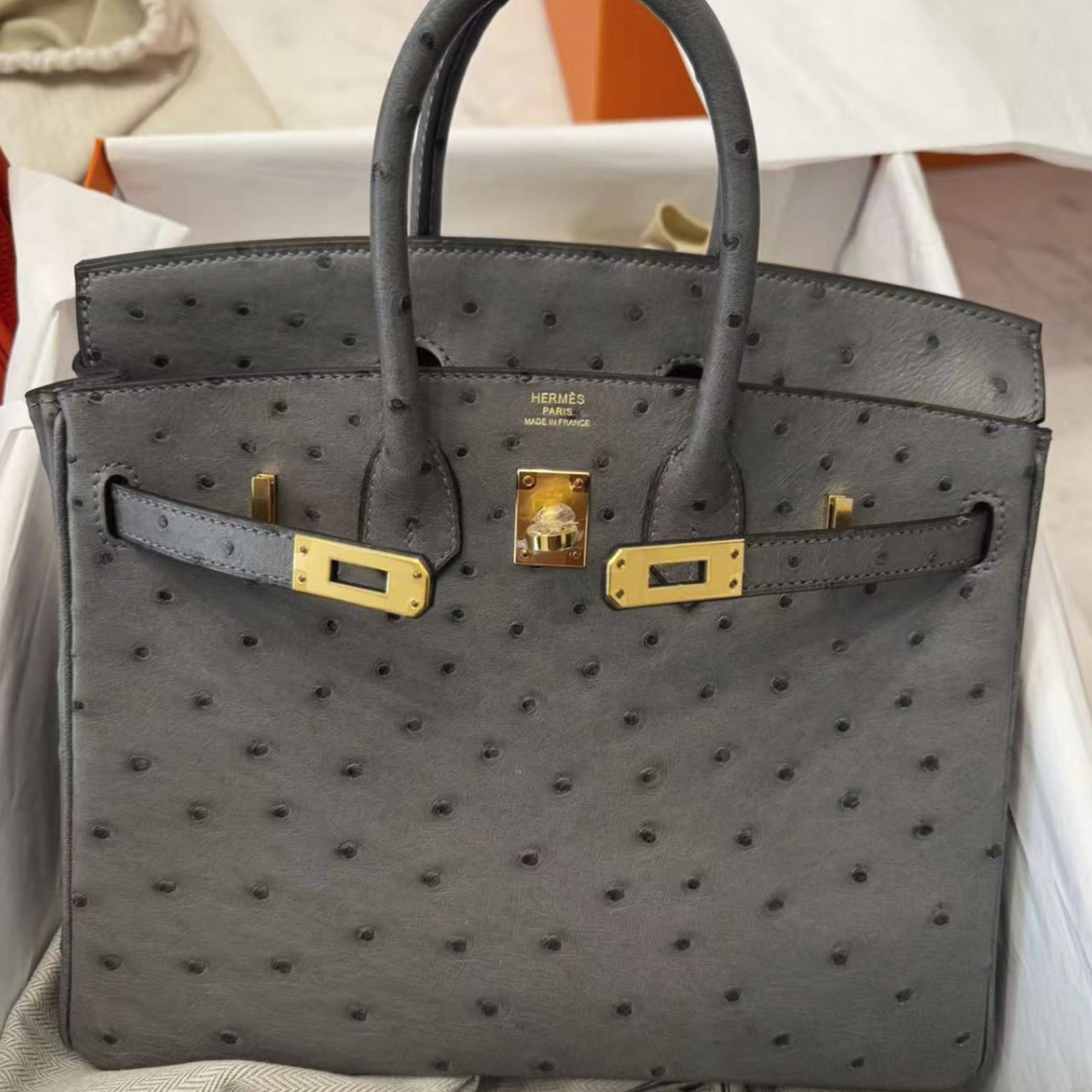 Birkin 25 Gris Meyer Ostrich Gold Hardware Stamp U