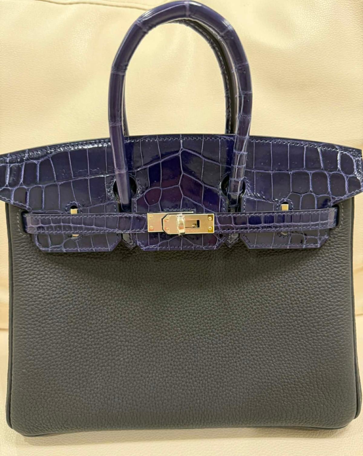 Birkin 25 Touch Caban Blue Togo Shiny Palladium Hardware Stamp W