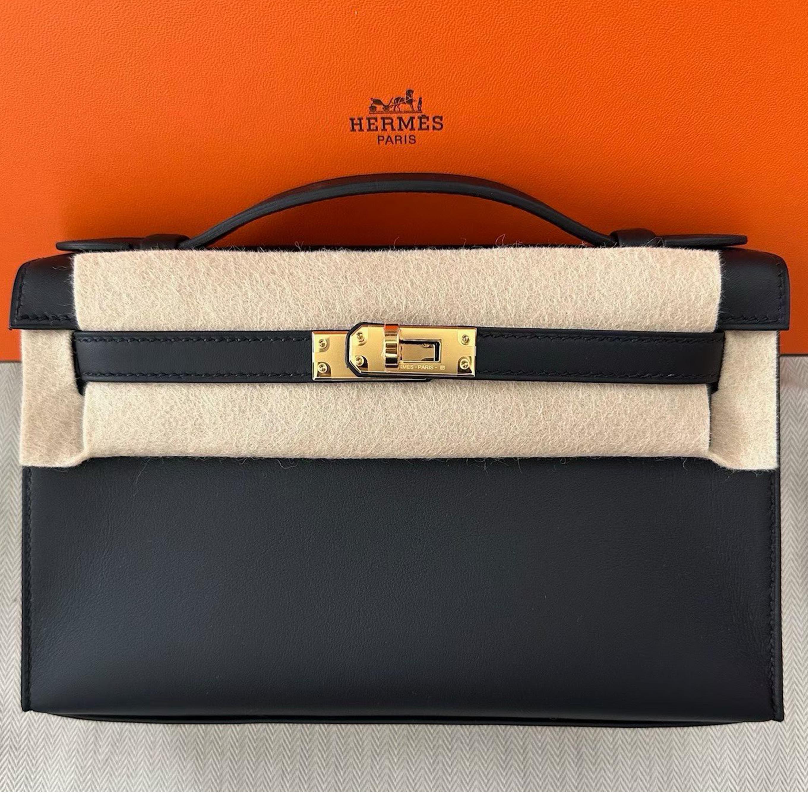 Kelly Pochette Black Swift Gold Hardware Stamp K