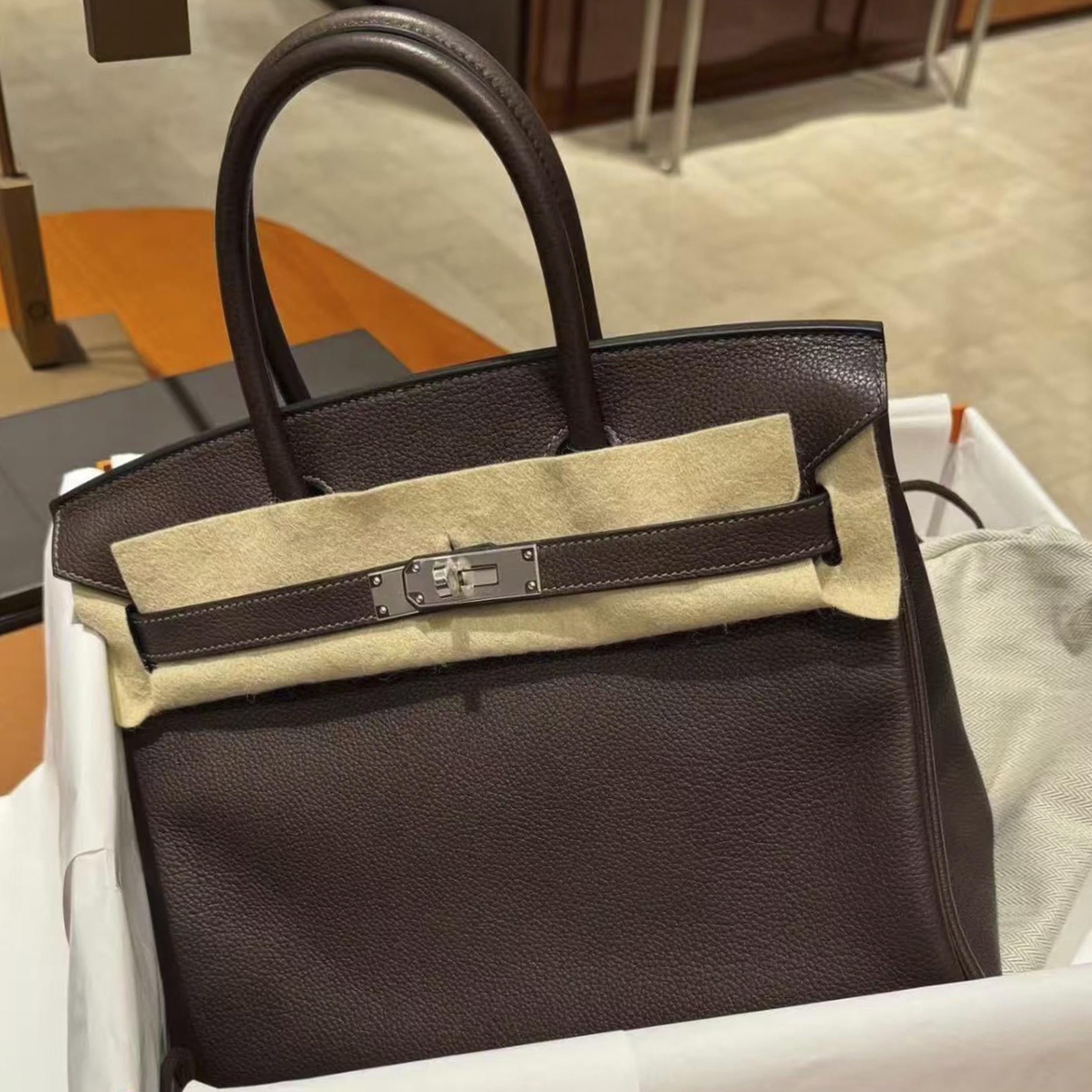 Birkin 30 Barenia Ebene Palladium Hardware Stamp W