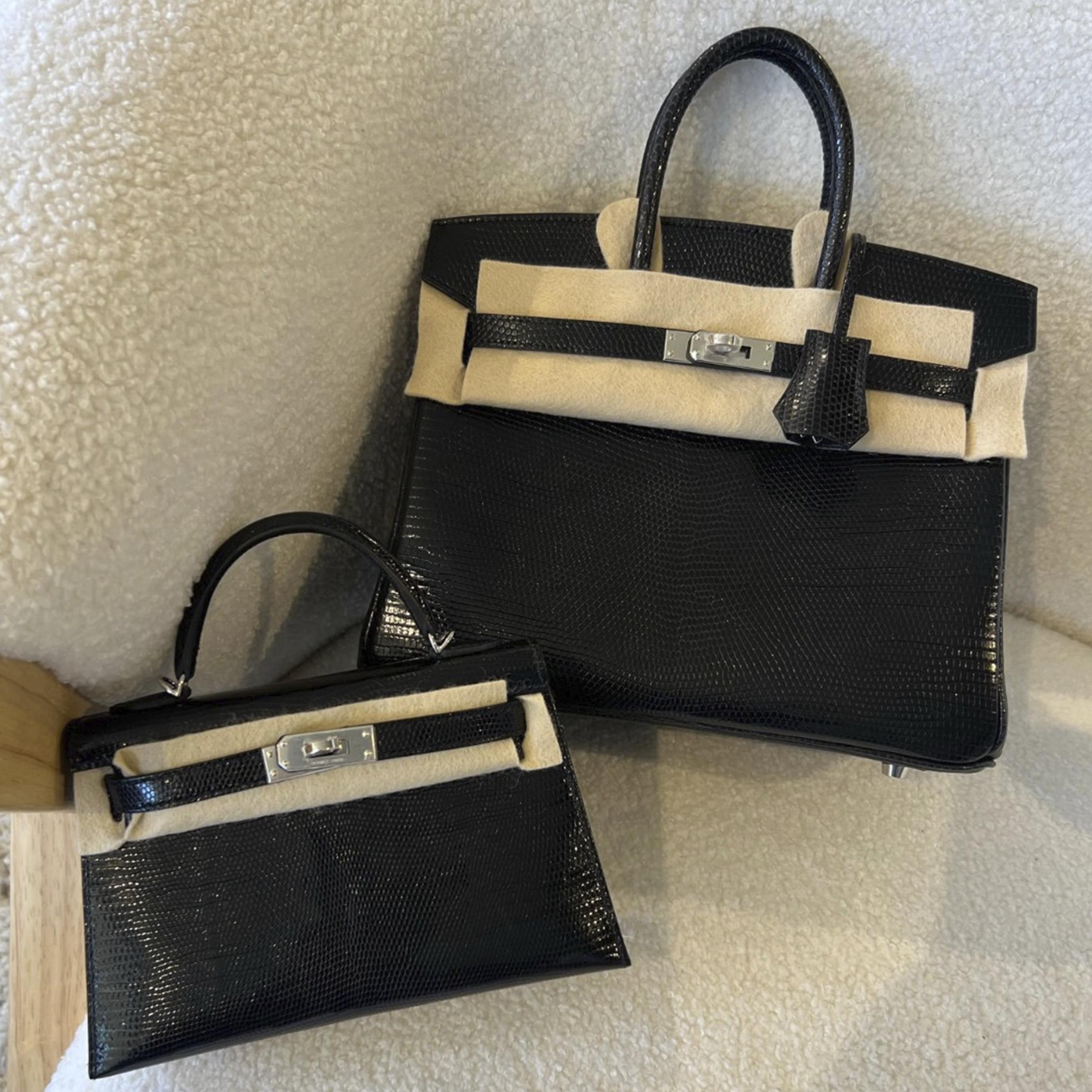 Birkin 25 Black Lizard Palladium Hardware Stamp K