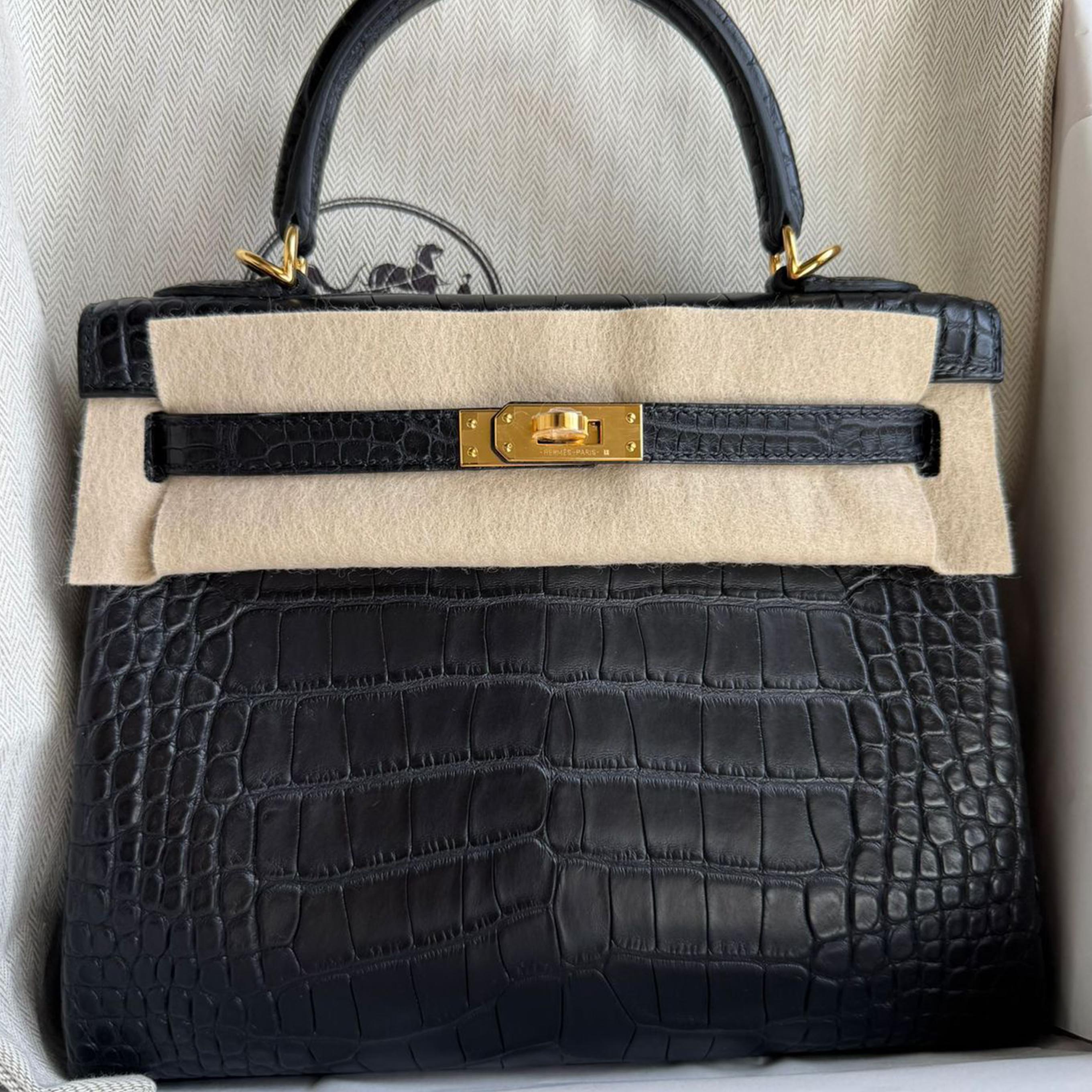 Kelly 25 Black Matte Gold Hardware Stamp K