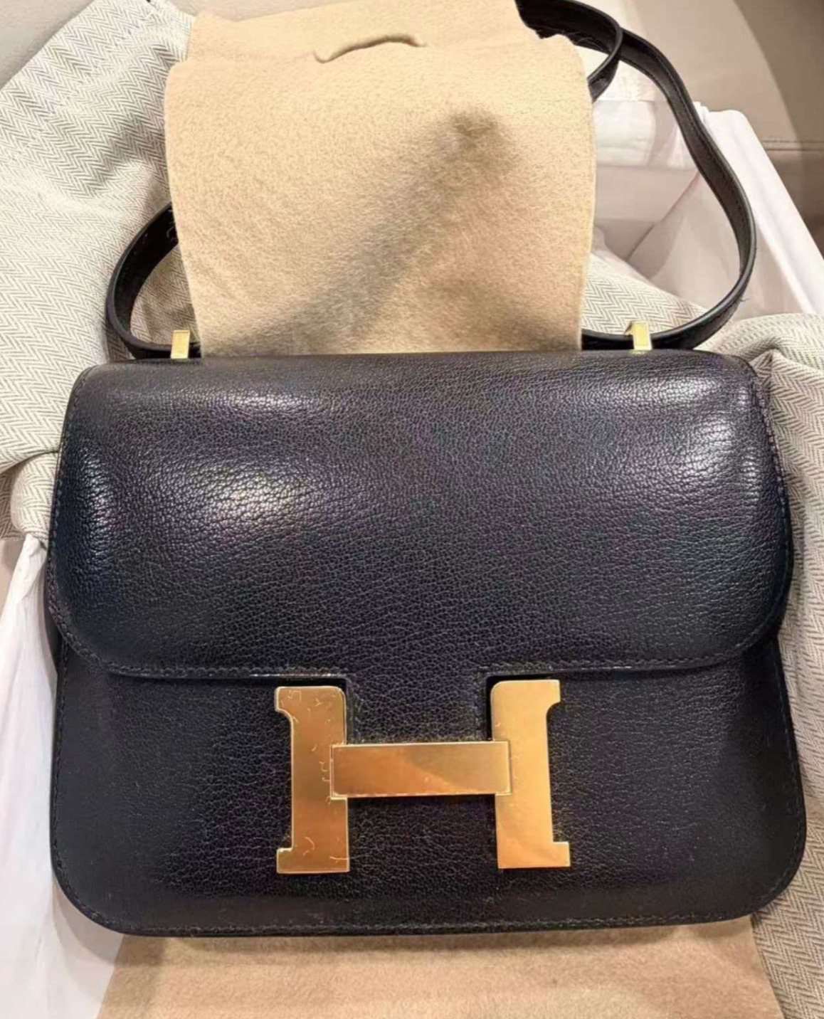 Constance 18 Black Chevre Gold Hardware Stamp K