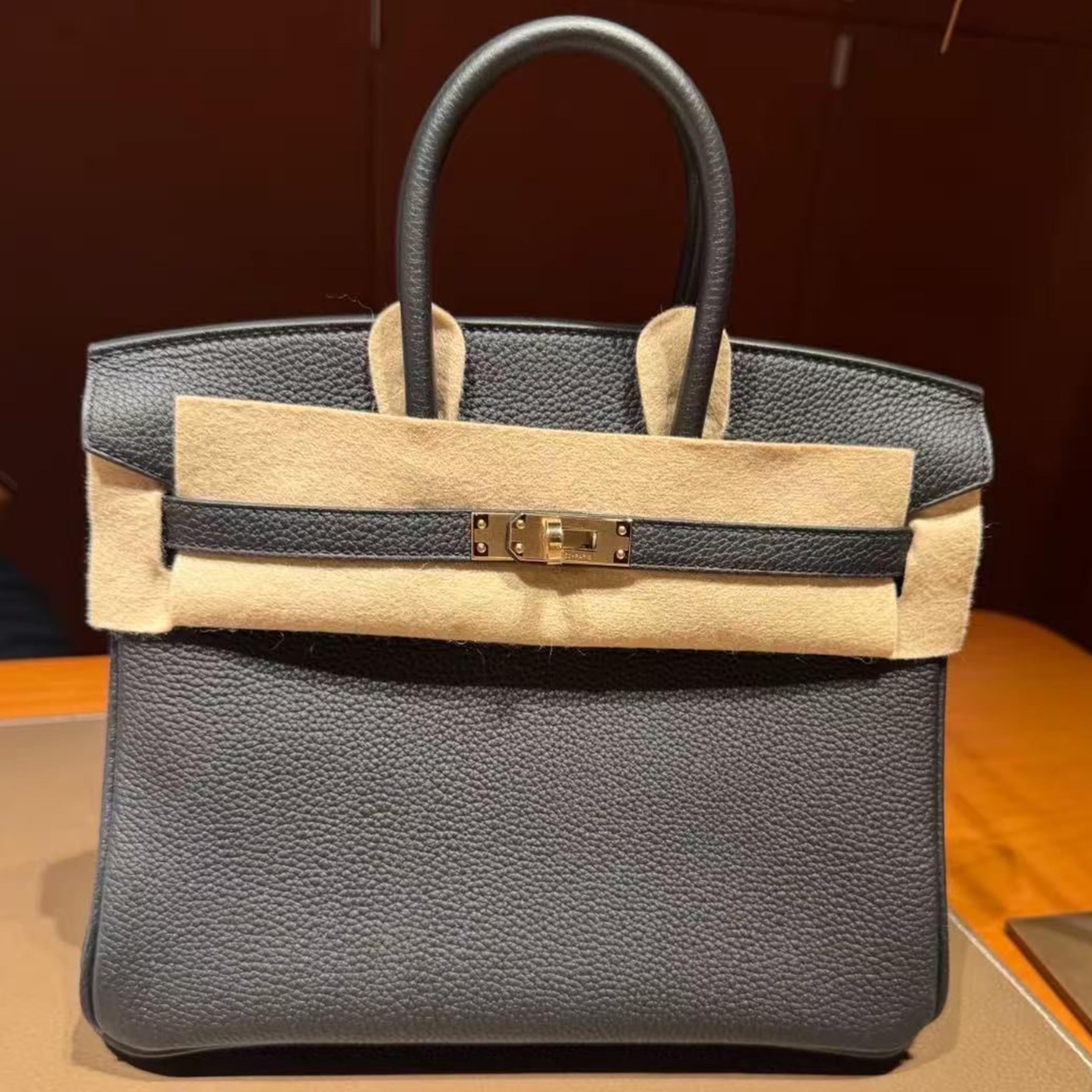 Birkin 25 Black Togo Permabrass Hardware Stamp K