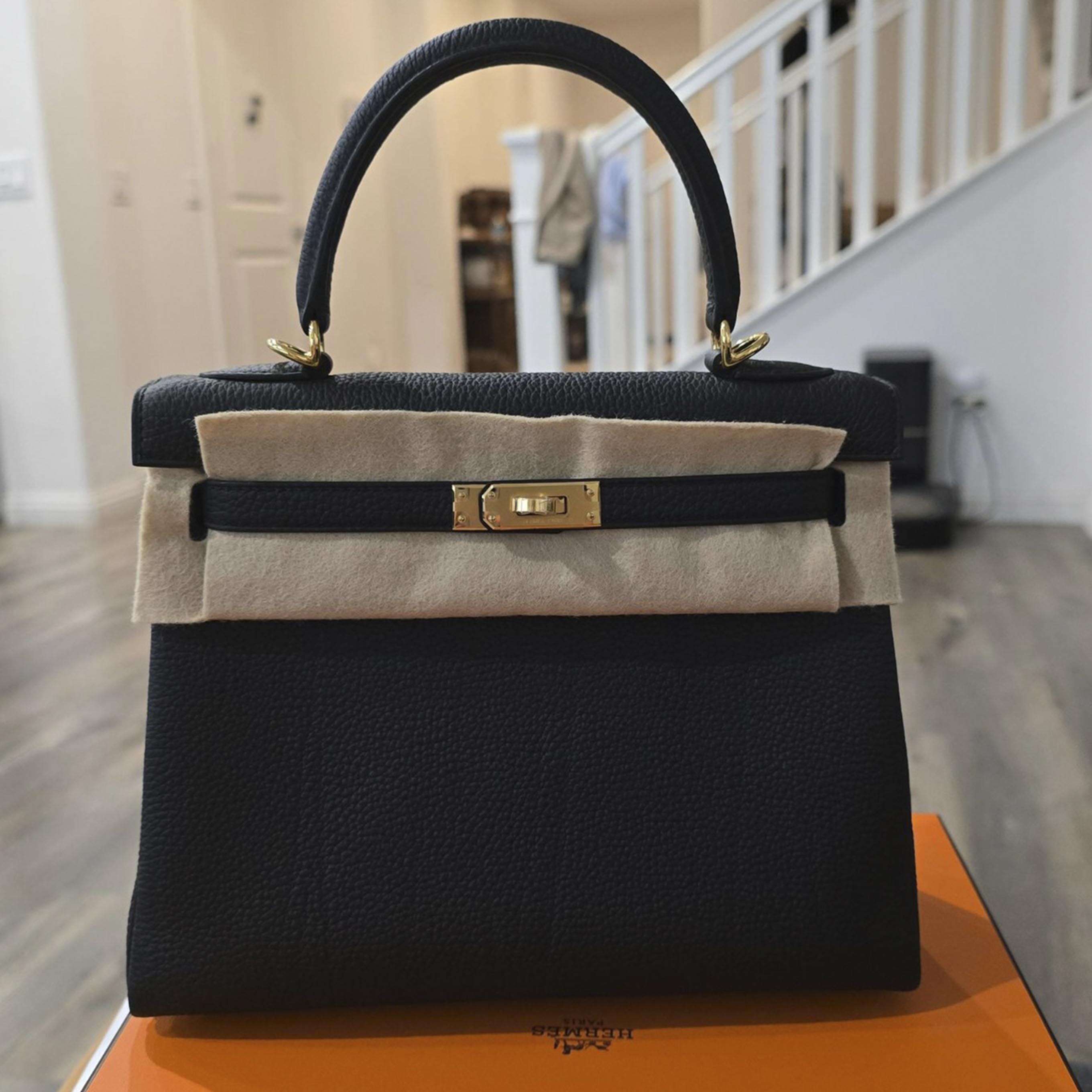 Kelly 25 Black Togo Gold Hardware Stamp K