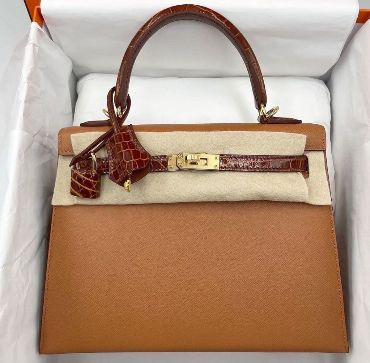 Kelly 25 Touch Gold Miel Madame Shiny Gold Hardware Stamp G