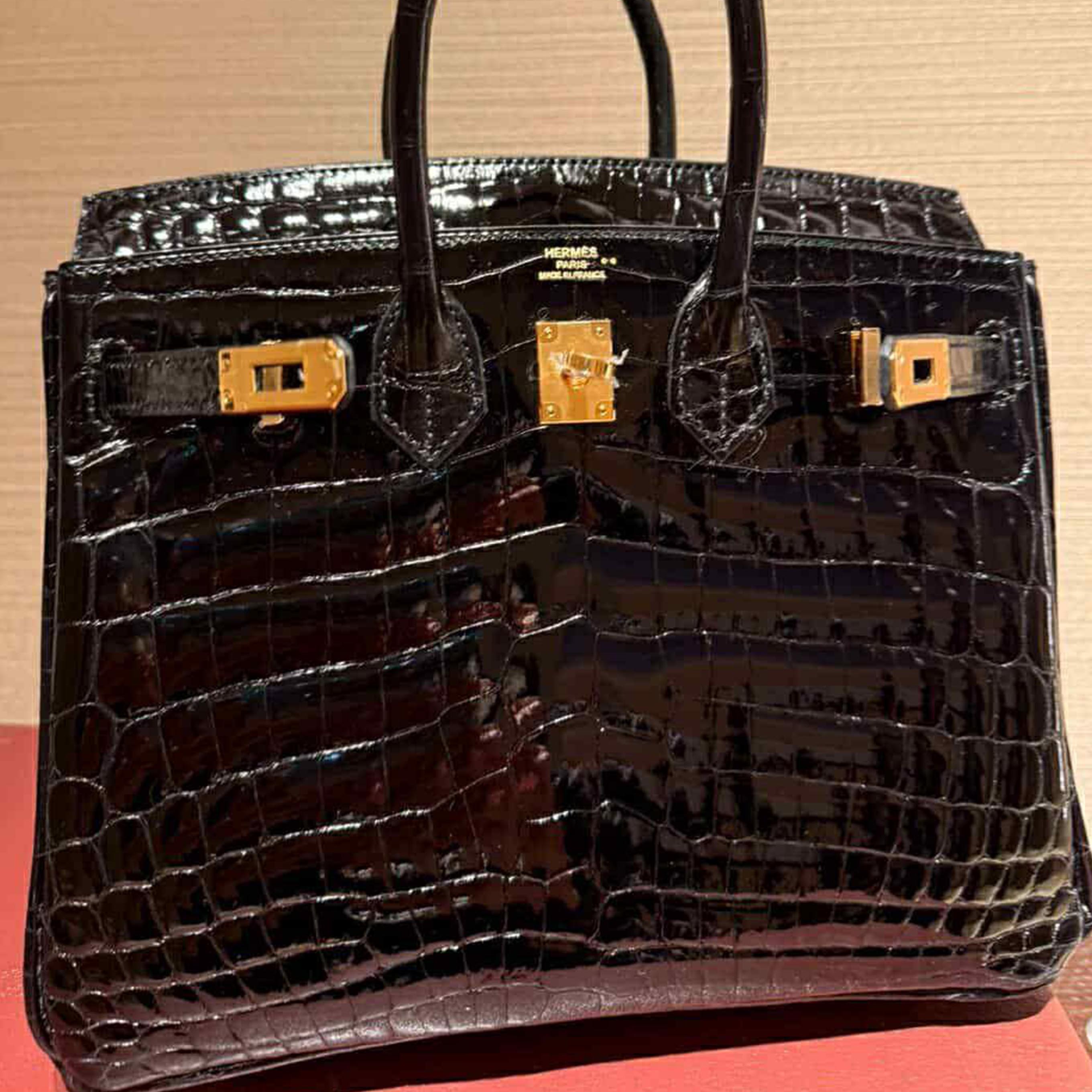 Birkin 25 Black Shiny Alligator Gold Hardware Stamp W