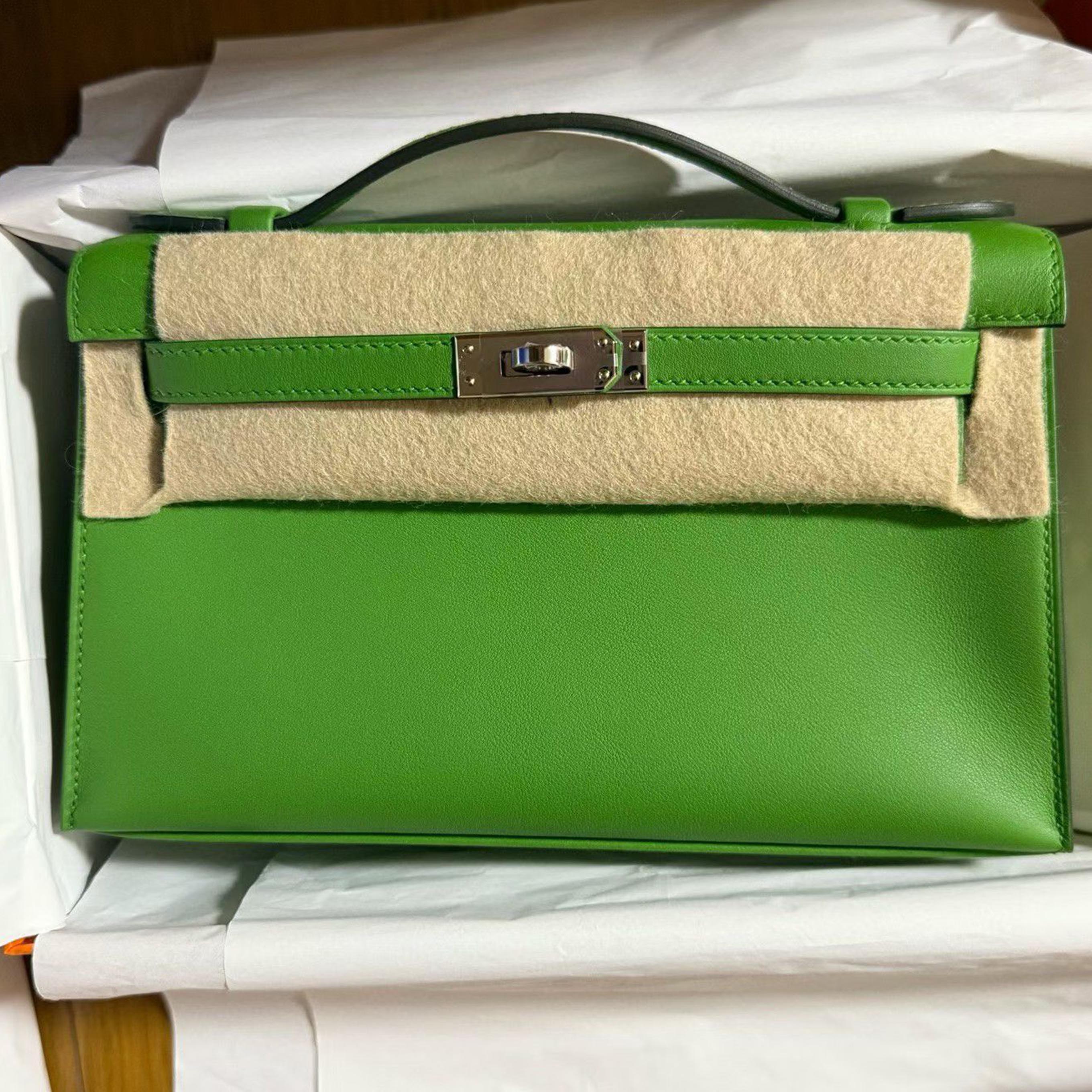 Kelly Pochette Vert Yucca Palladium Hardware Stamp K