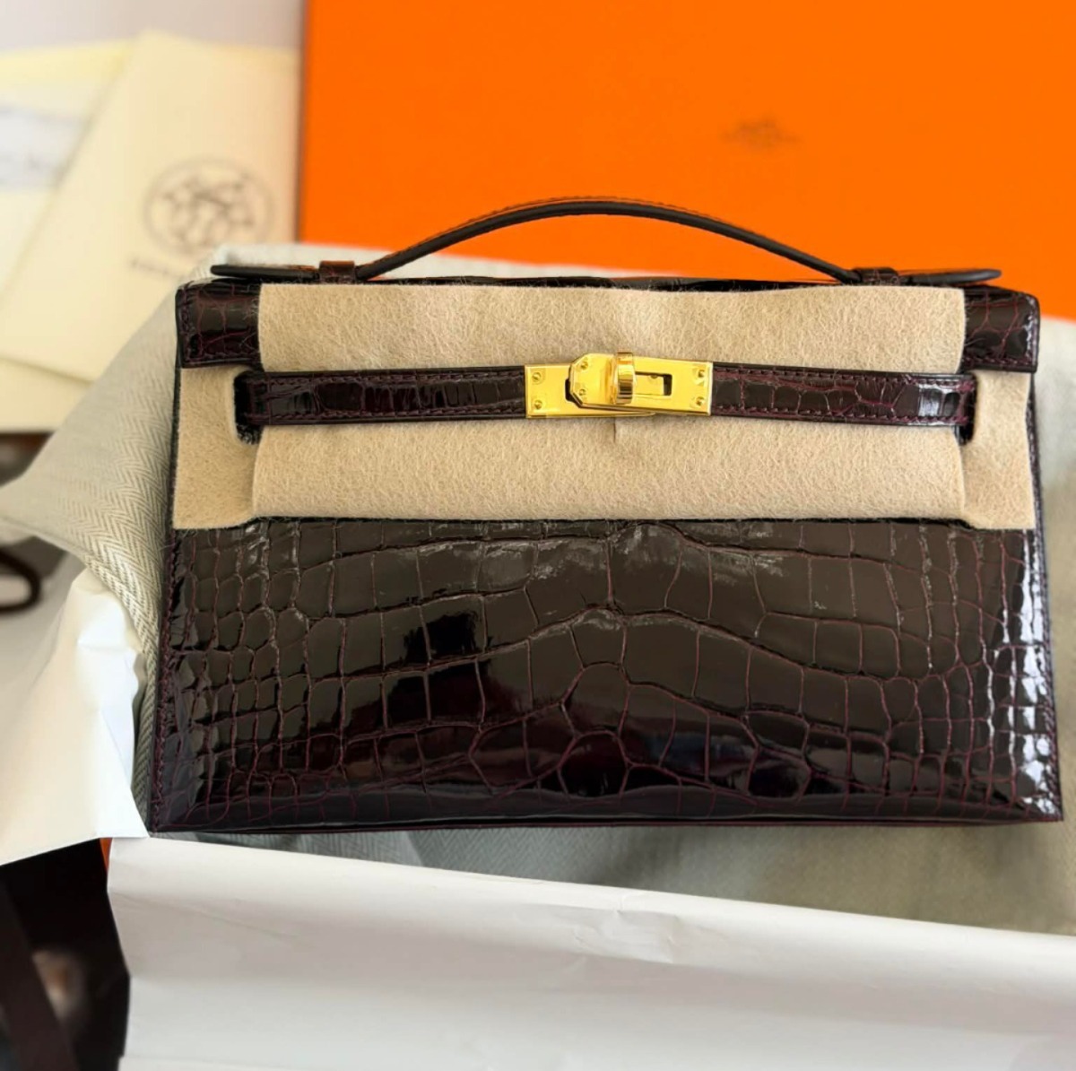 Kelly Pochette HSS Bordeaux Black Shiny Gold Hardware Stamp K