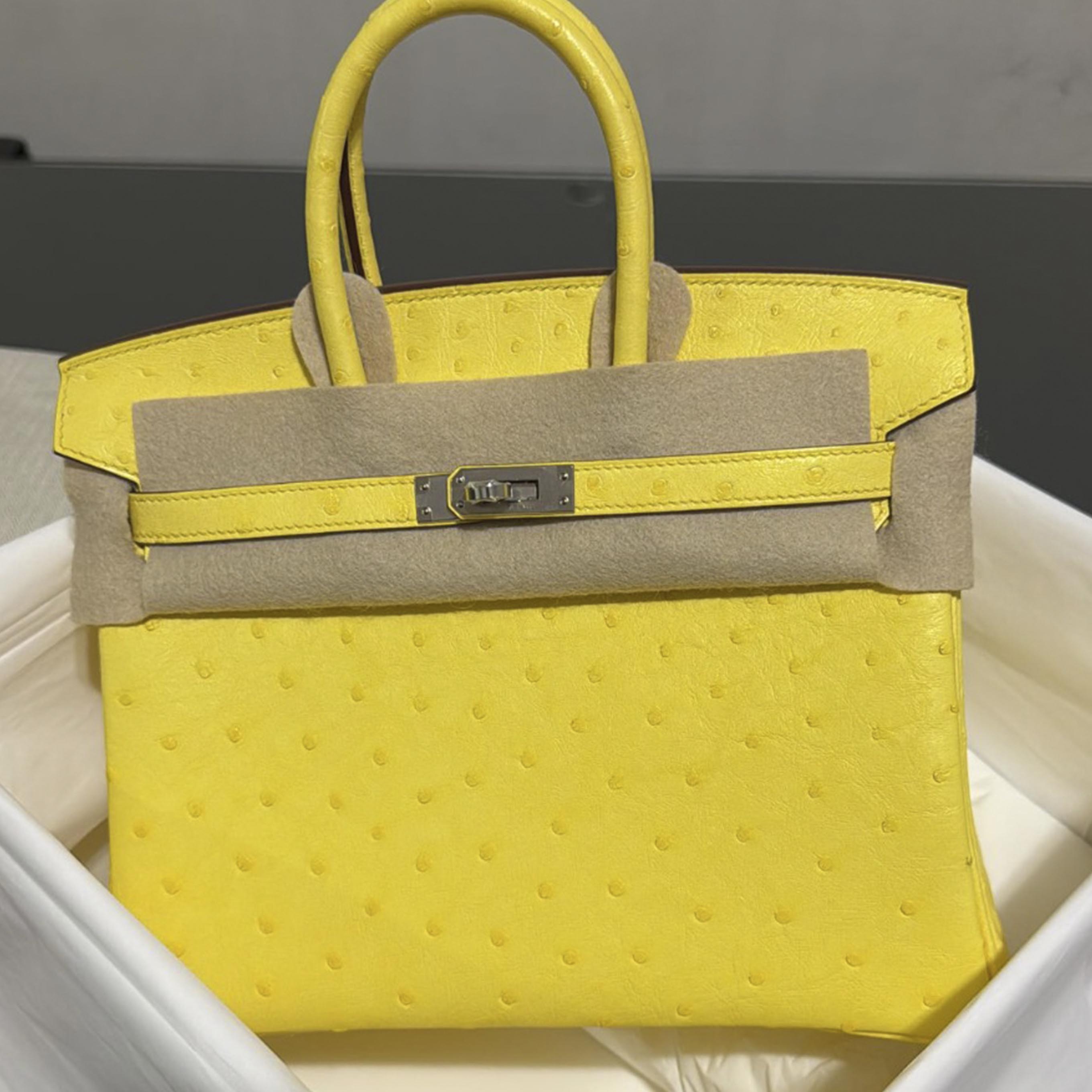 Birkin 25 Jaune Citron Ostrich Palladium Hardware Stamp U