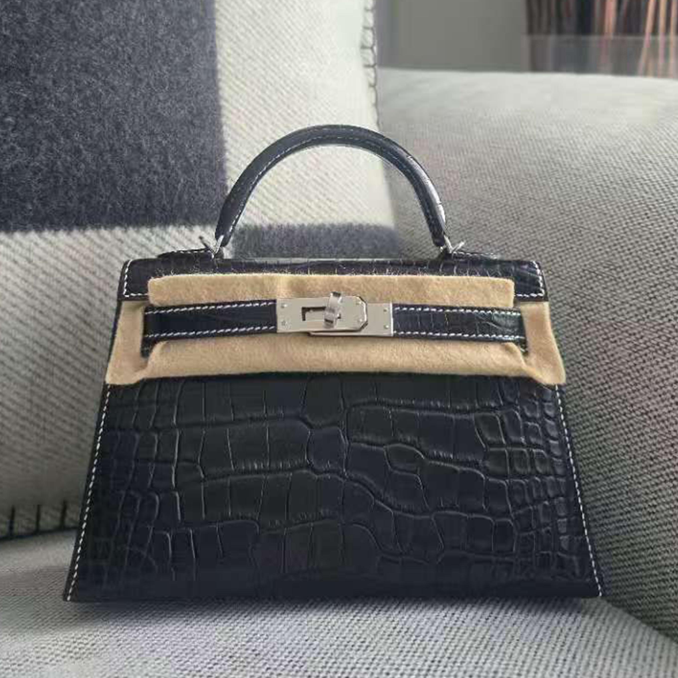 Kelly 20 Mini Black/Nata Matte Palladium Hardware Stamp K