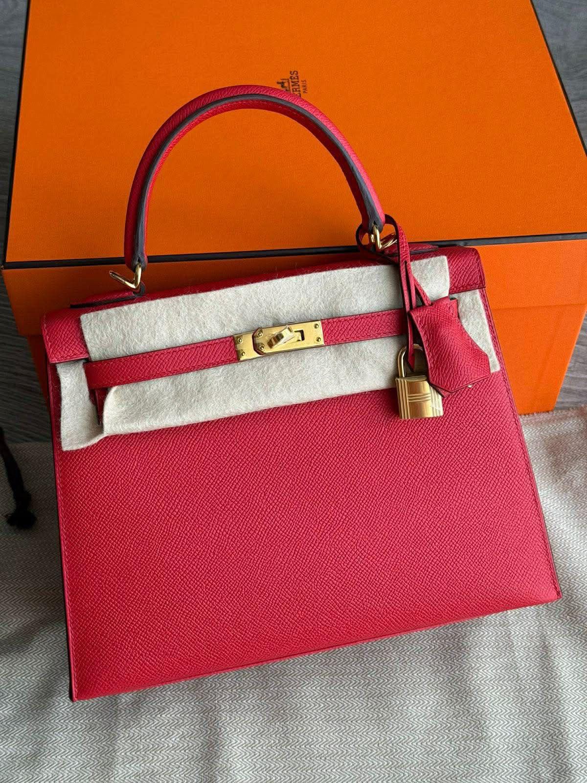 Kelly 25 Rouge Radieux Epsome Gold Hardware Stamp K