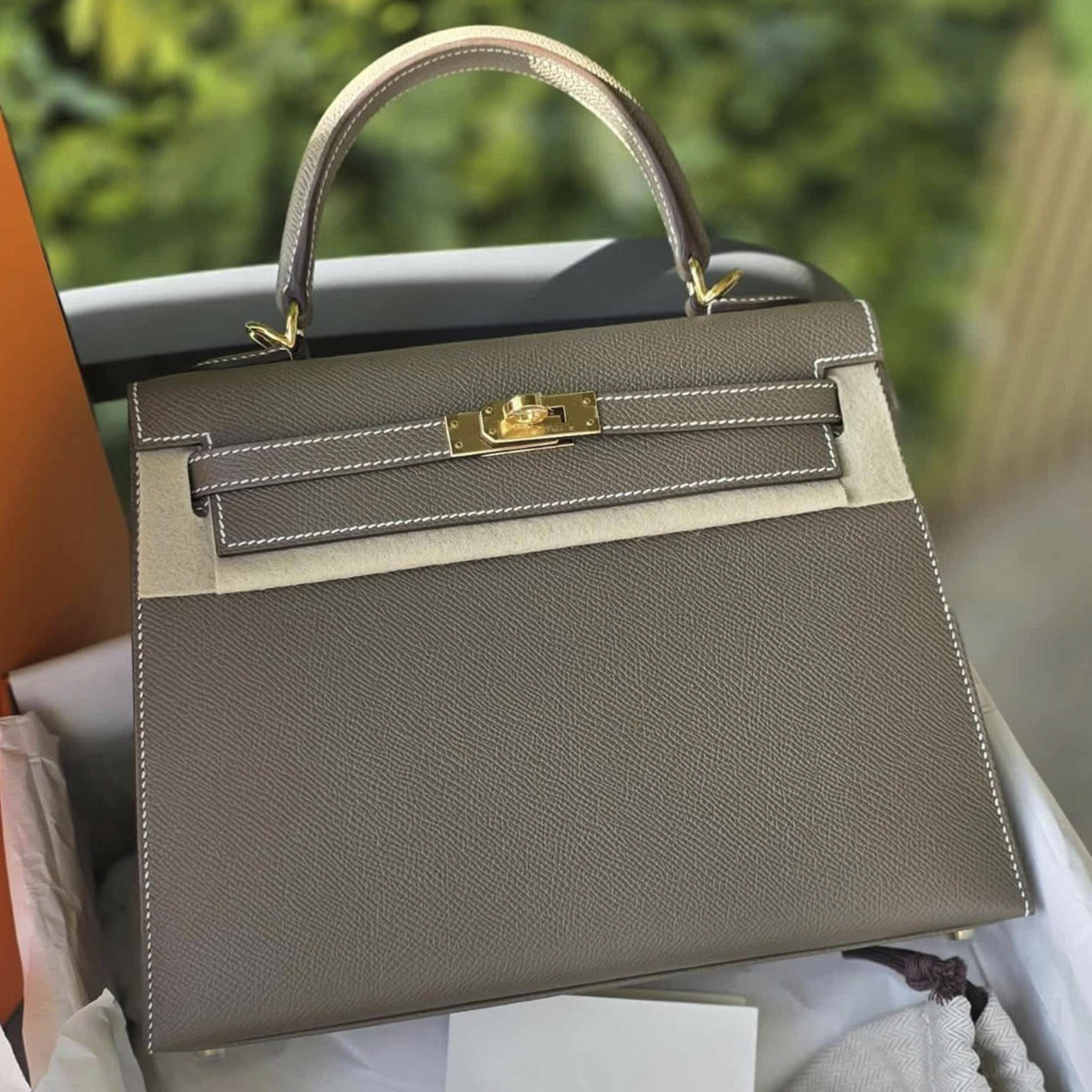 Kelly 25 Etoupe Gold Hardware Stamp B