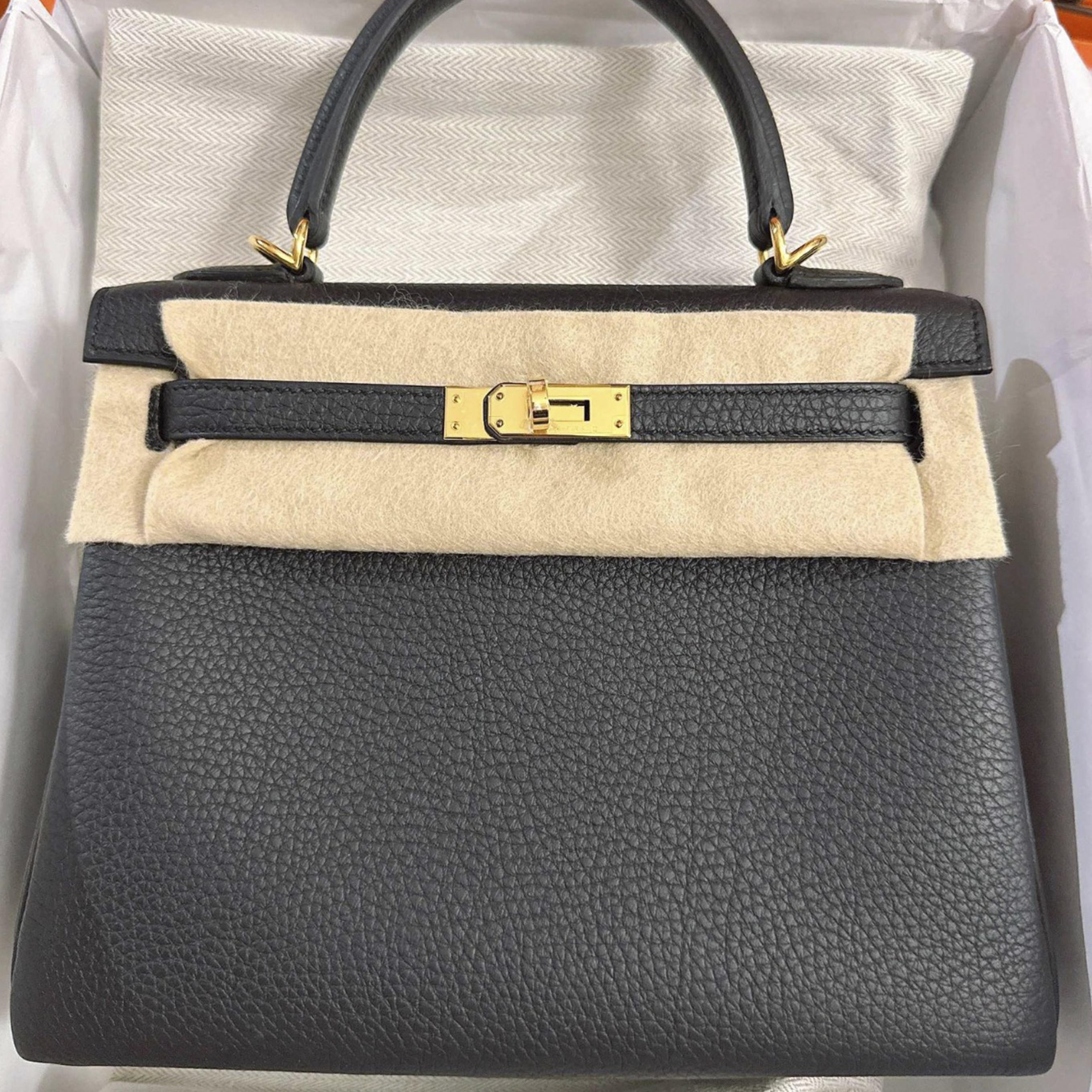 Kelly 25 Black Togo Gold Hardware Stamp K