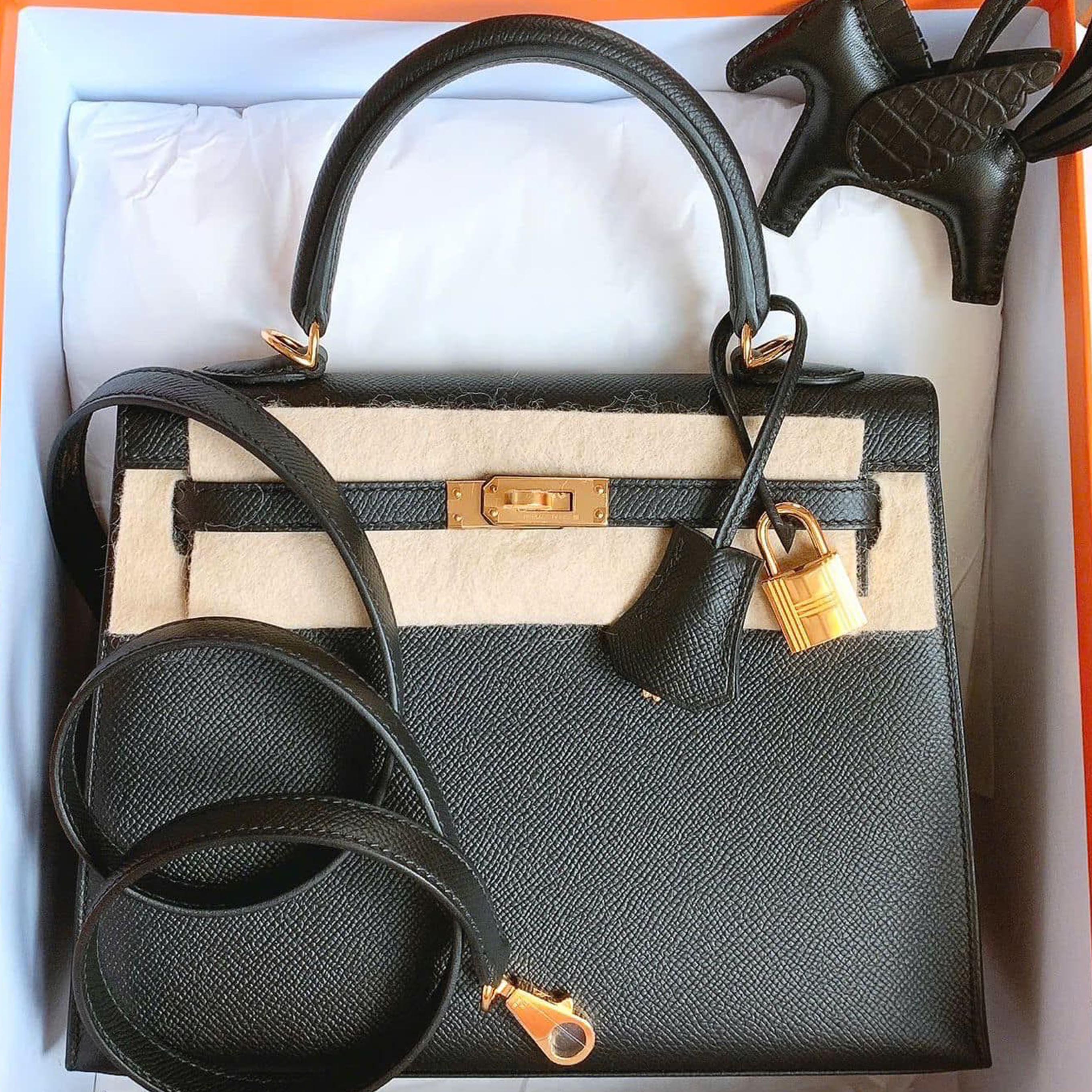 Kelly 25 Black Epsom Gold Hardware Stamp K