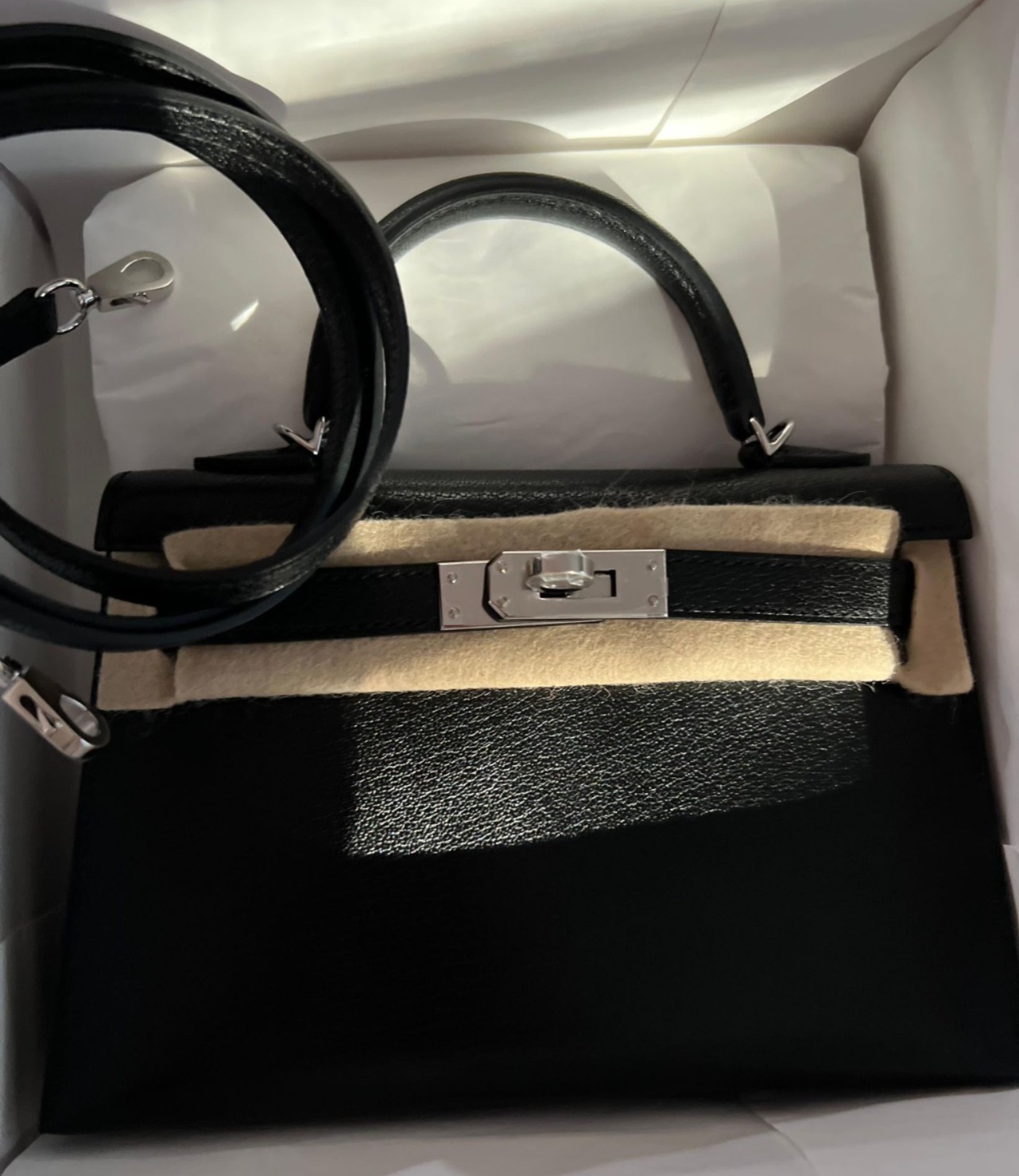 Kelly 20 Mini Black Chevre Palladium Hardware Stamp G