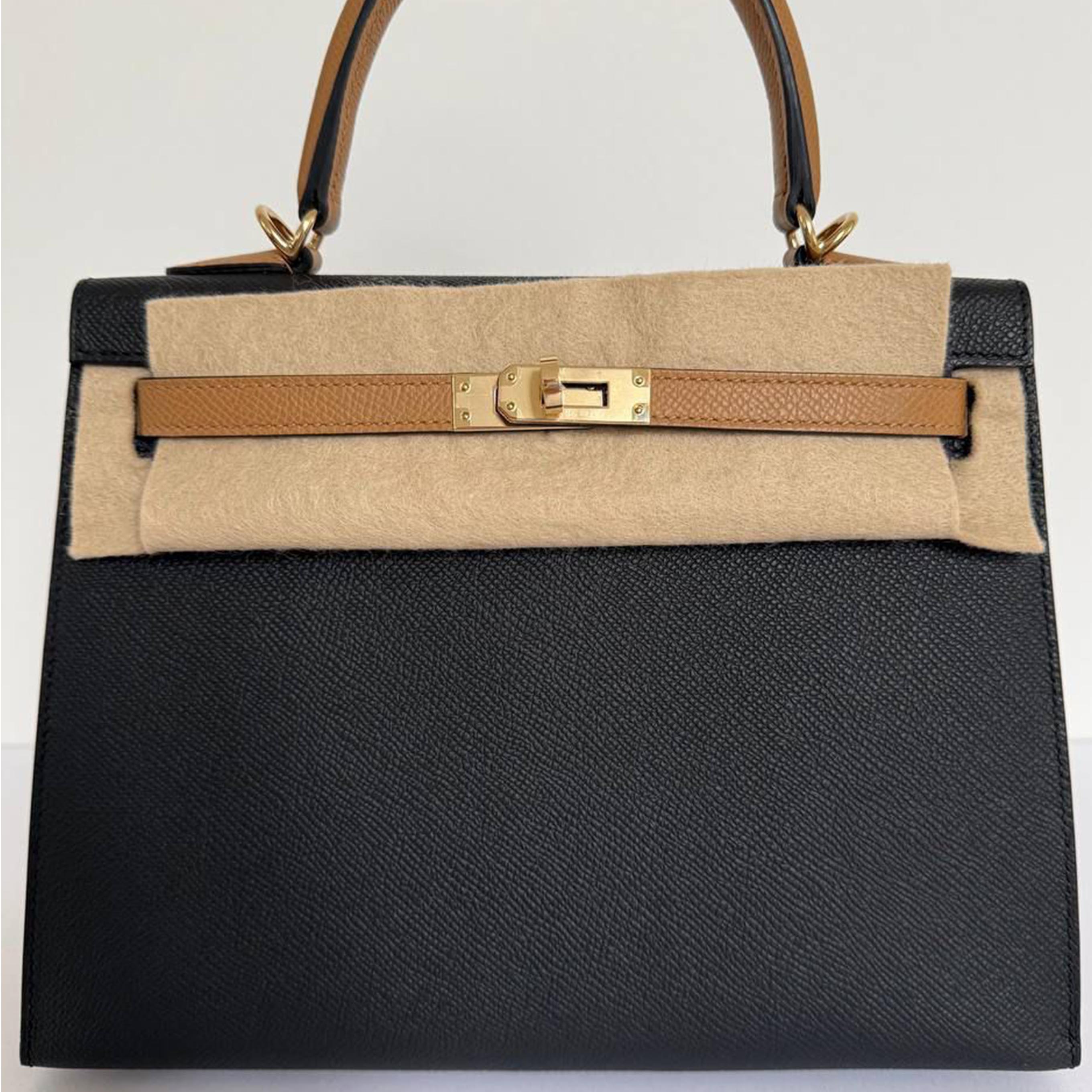 Kelly 25 HSS Black/Biscuit Gold Hardware Stamp K
