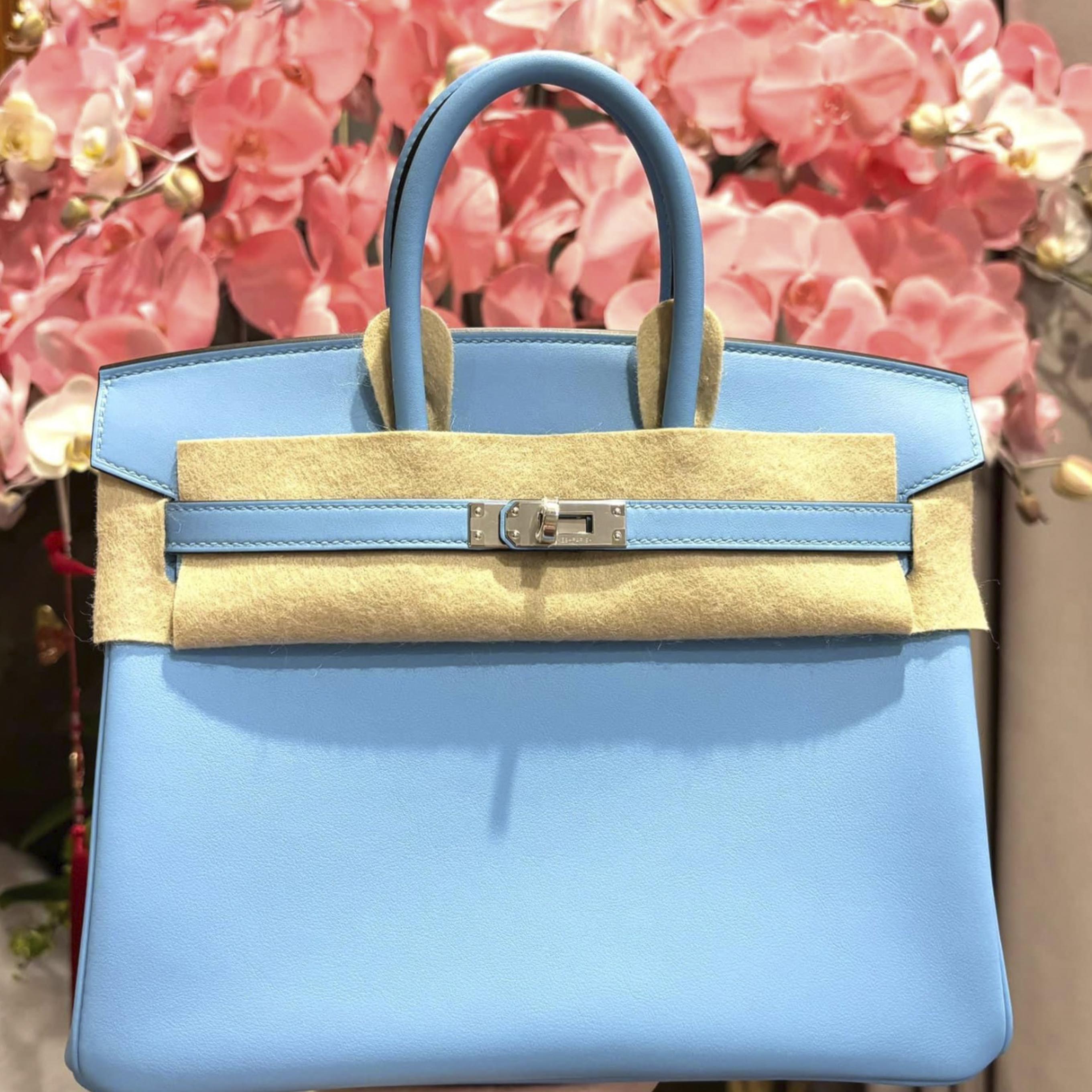 Birkin 25 Celeste Swift Palladium Hardware Stamp K