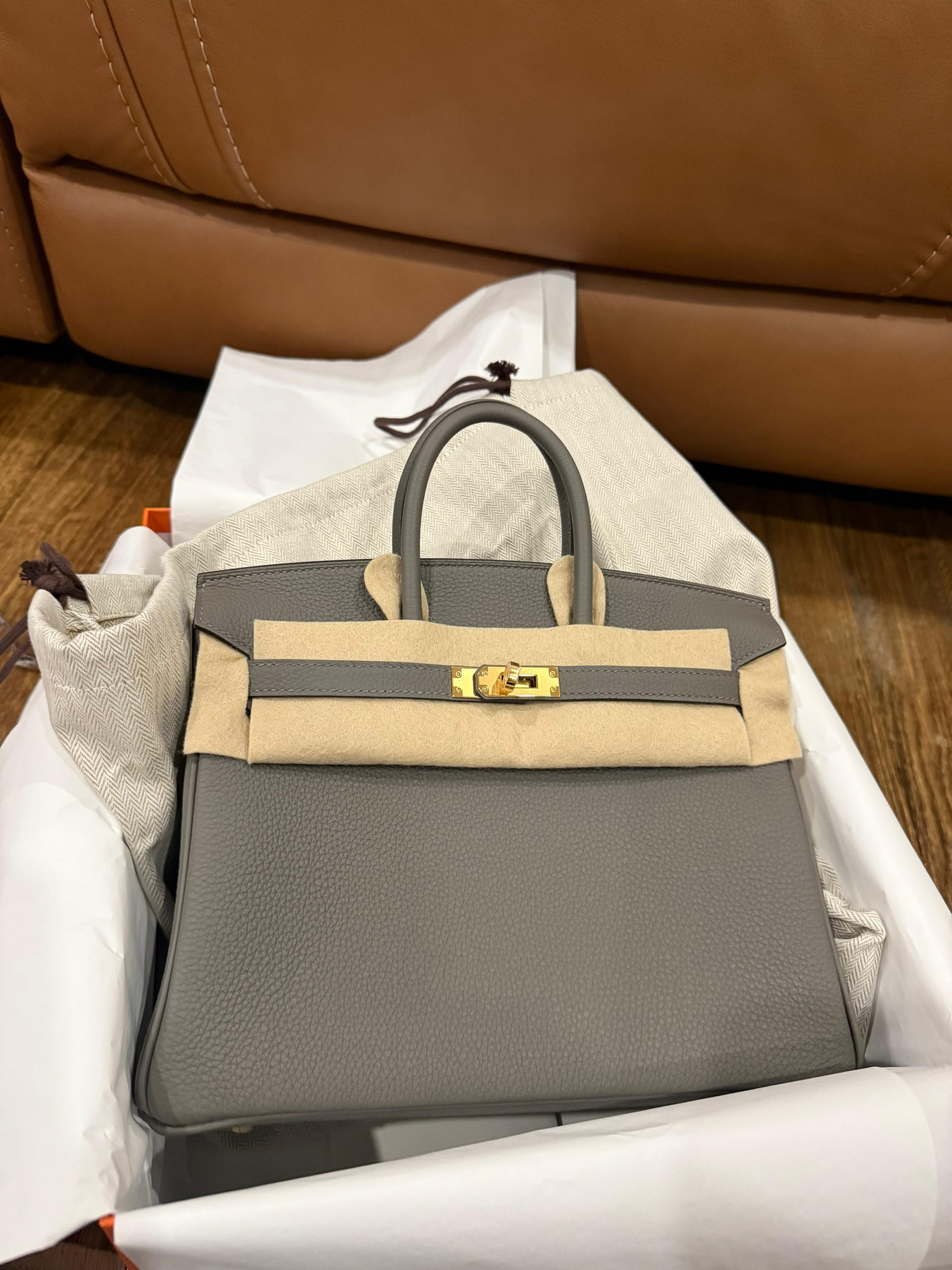 Birkin 25 Gris Meyer Togo Gold Hardware Stamp U