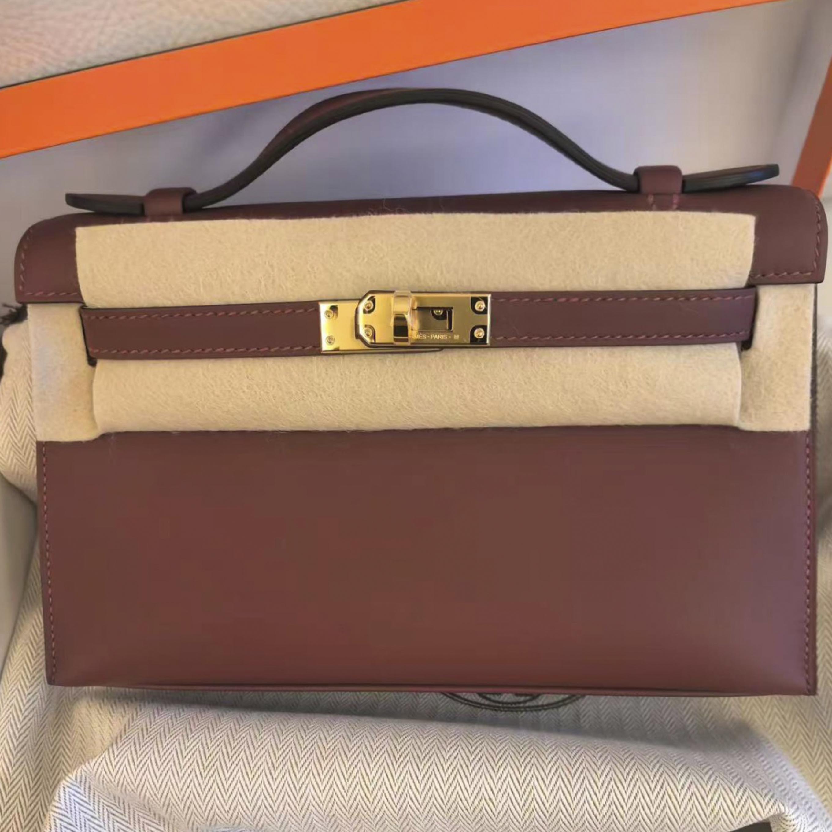 Kelly Pochette Rouge H Gold Hardware Stamp K