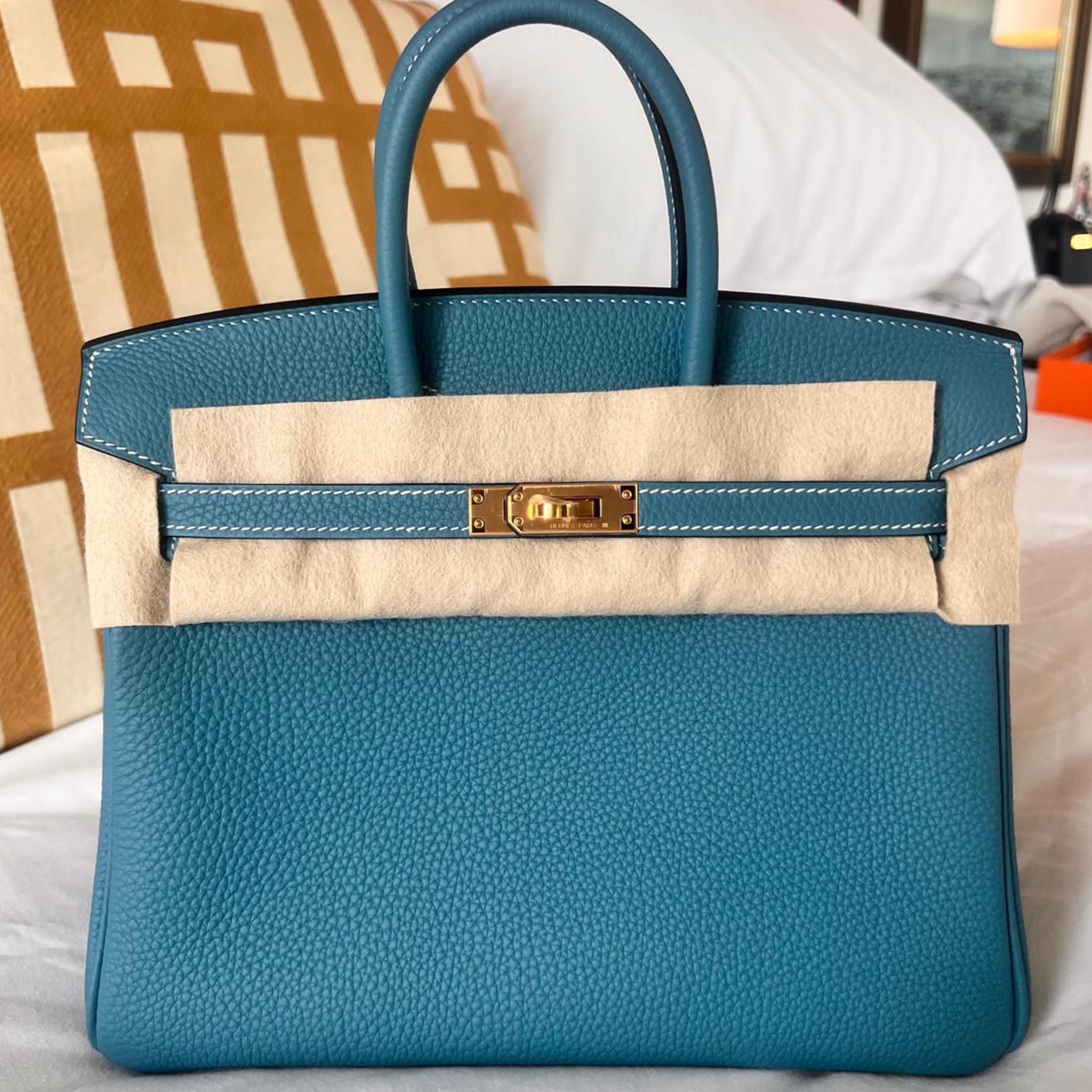 Birkin 25 Blue Jean Togo Gold Hardware Stamp W