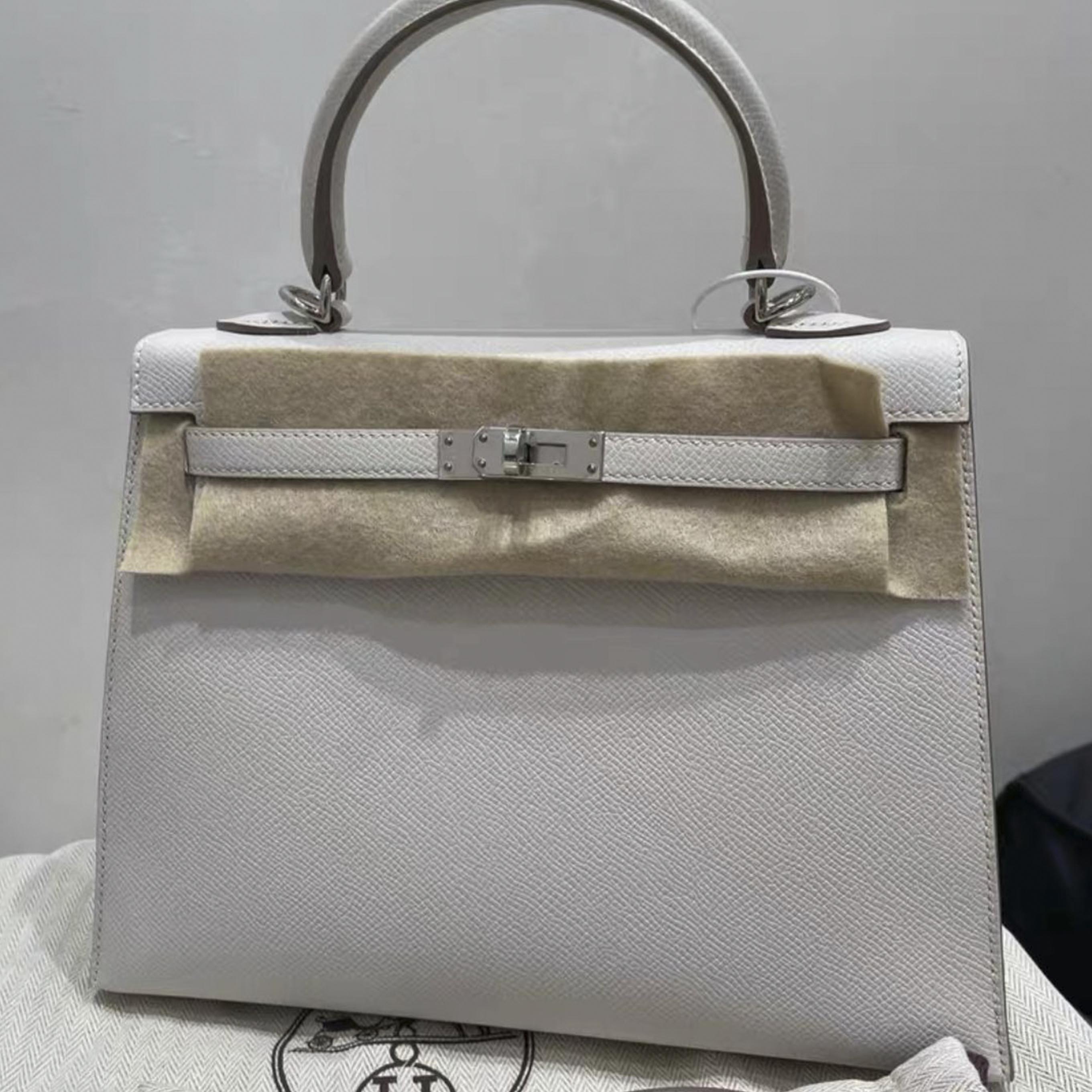 Kelly 25 Gris Pale Epsom Palladium Hardware Stamp B