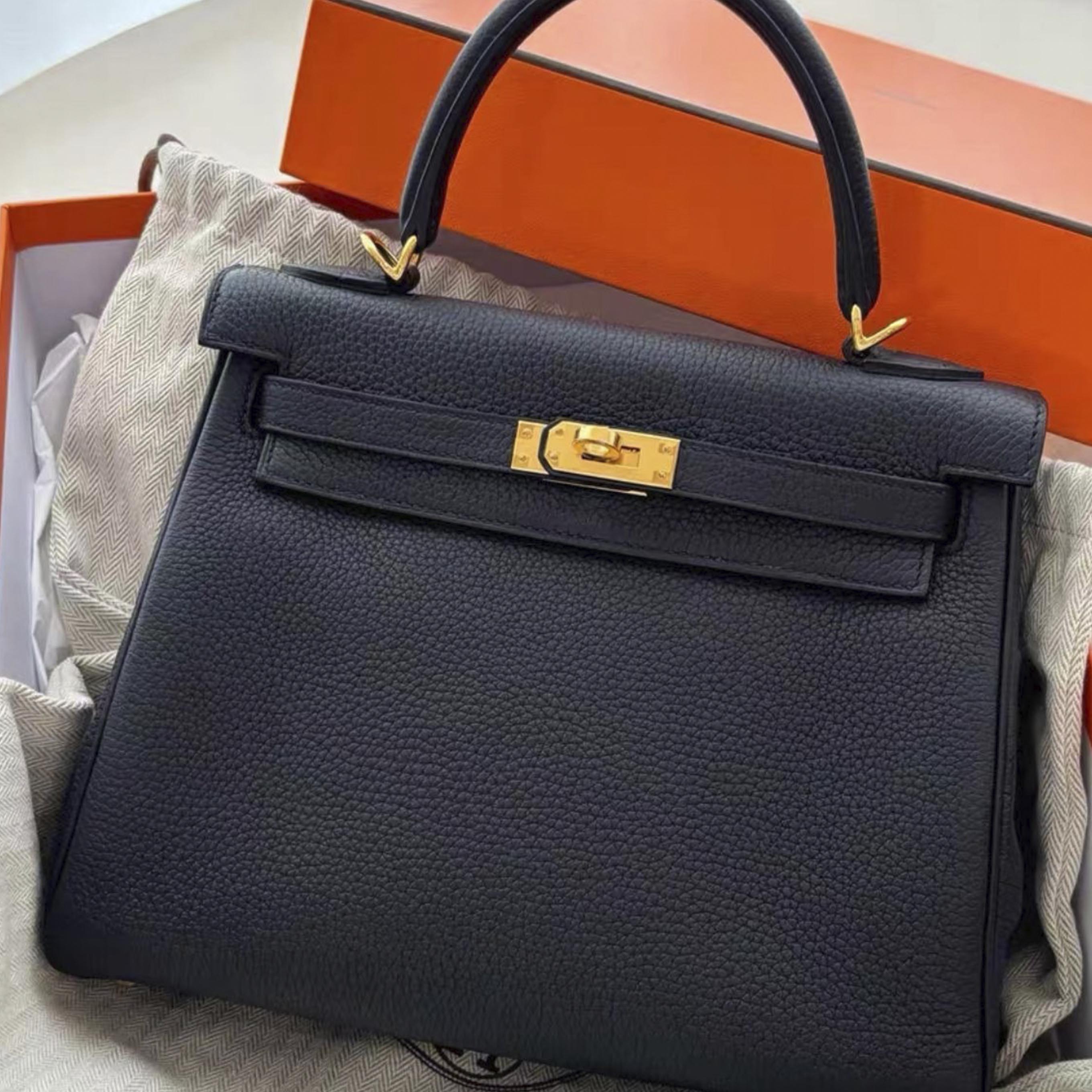 Kelly 25 Black Togo Gold Hardware Stamp Z