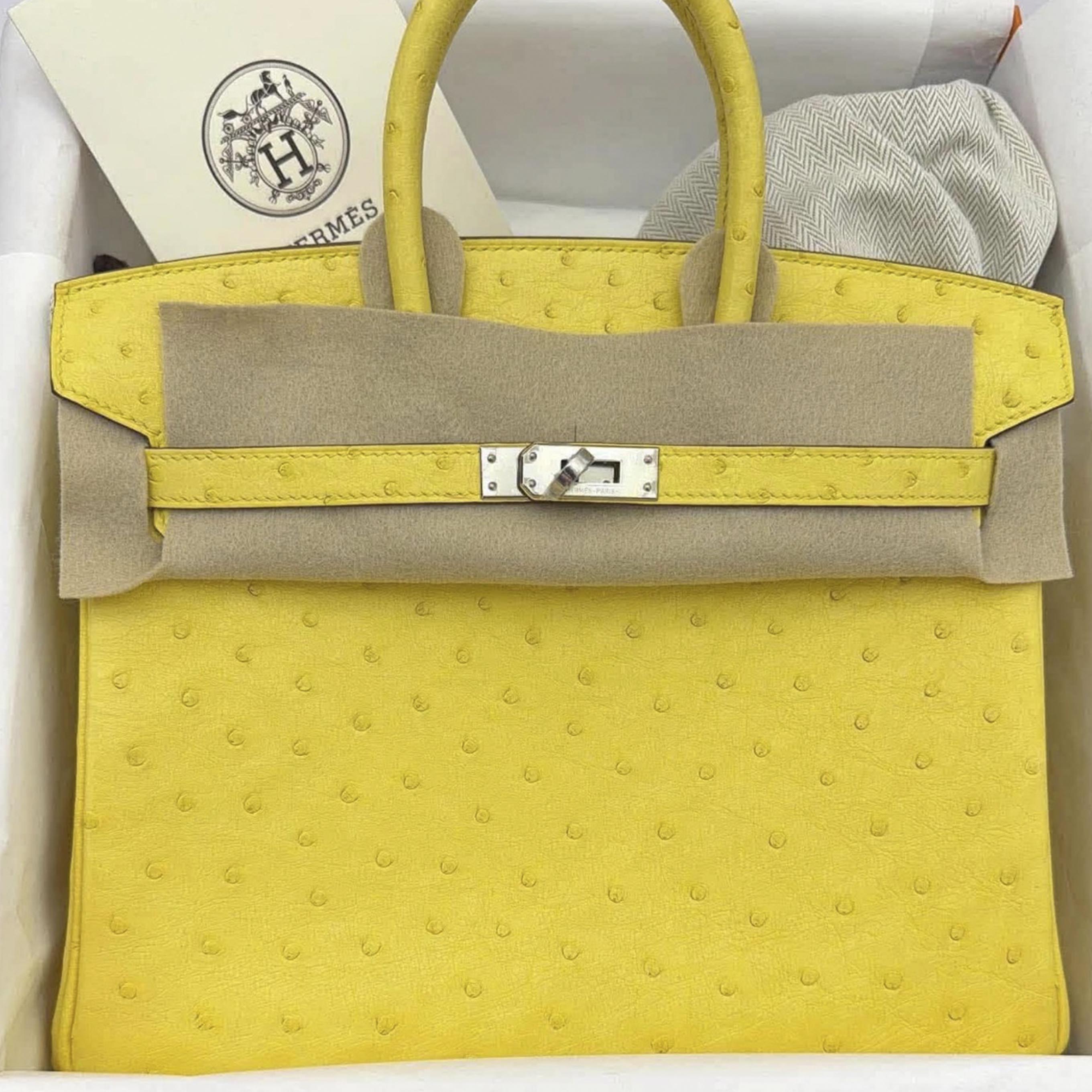 Birkin 25 Jaune Citron Ostrich Palladium Hardware Stamp U